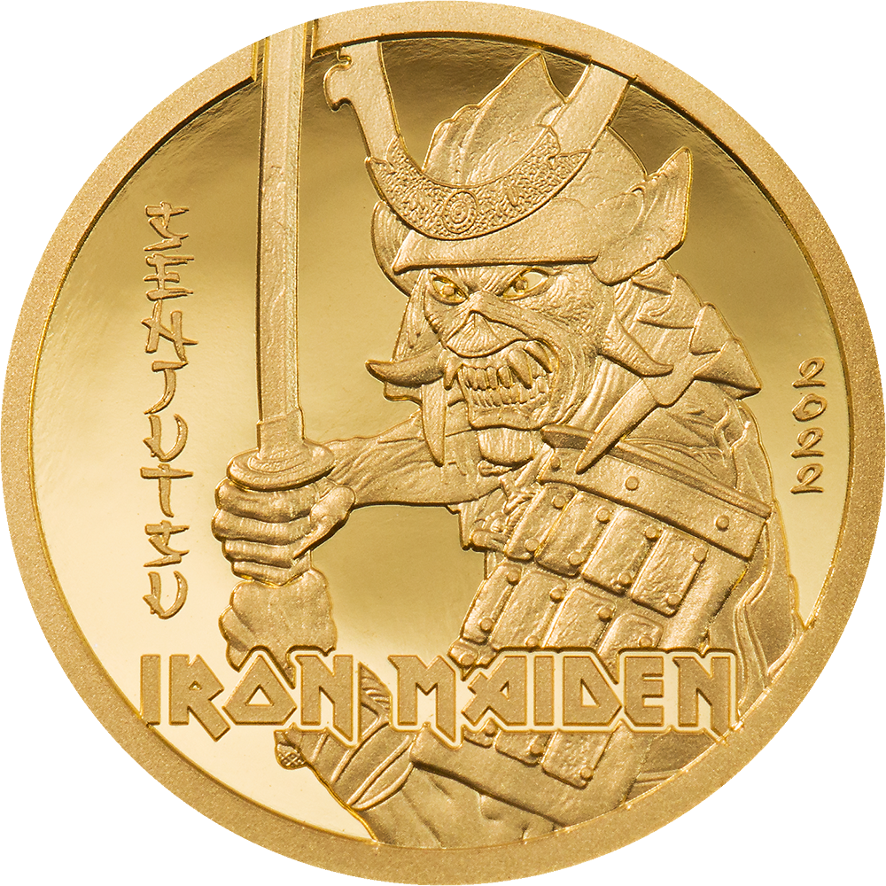 Having released seventeen albums in their career, Iron Maiden has become known for their extravagant album artwork and Senjutsu is no exception. This half gram coin showcases the album cover in pure gold: Eddie the mascot sporting full samurai warrior gear, gripping a sword, and baring his teeth! It might look like he's about to pop off the coin and attack, but don’t worry… he’s a lover not a fighter.
