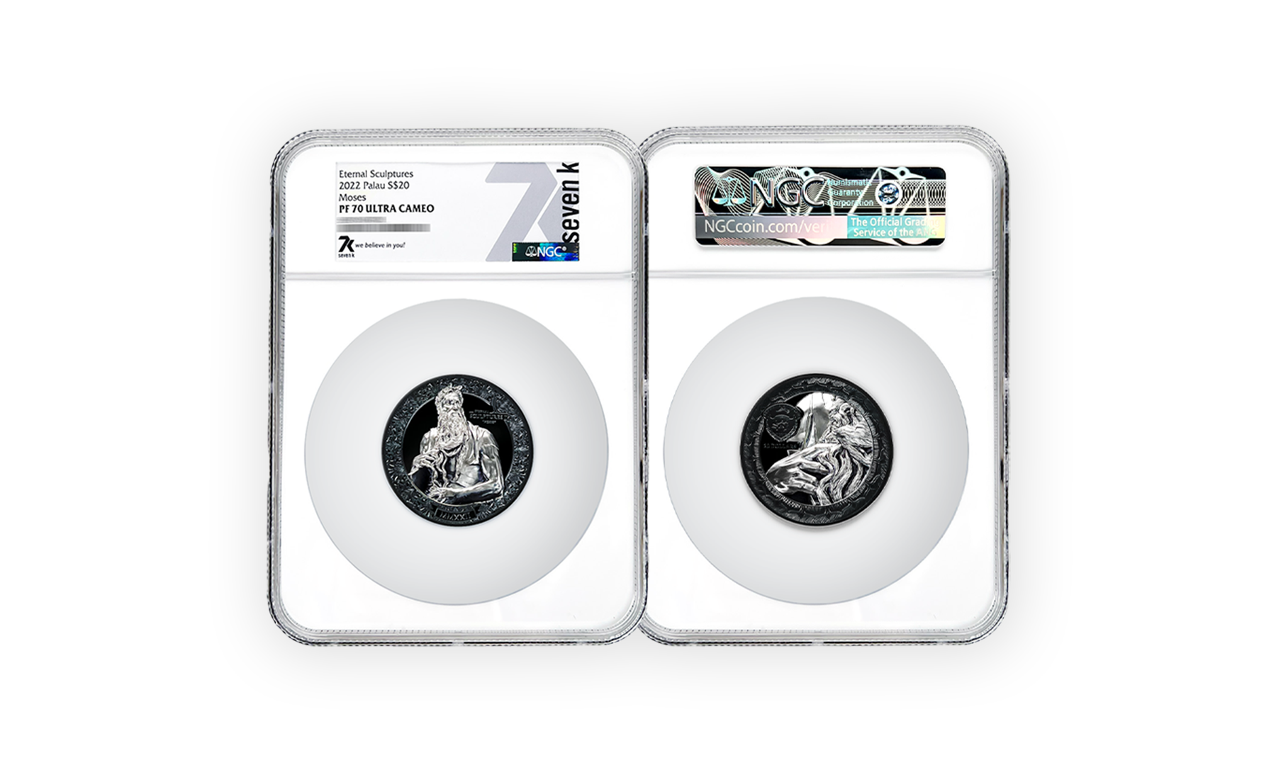 'Moses' by Michelangelo is the subject of this 3 oz silver coin belonging to the Eternal Sculptures II collection. Stunning as always, this collection uses smartminting® technology to bring to life the sculptures of the great artists of the past. It took Michelangelo 40 years to coax the prophet from marble, ending in a masterpiece over 7 feet tall. This statue is still around, located in San Pietro, Vincoli, Rome.