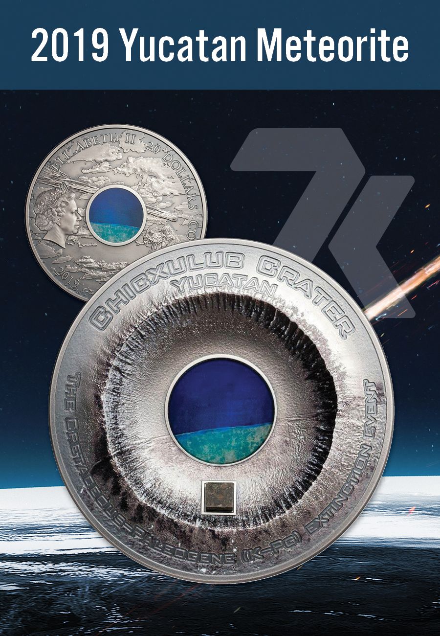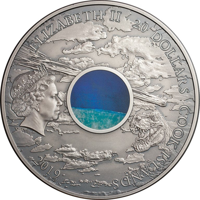 Collector's Note: The 2019 Cook Islands Yucatan Crater – Dinosaur Extinction: Winner in the MOST INNOVATIVE COIN category of the prestigious 2021 COTY awards.