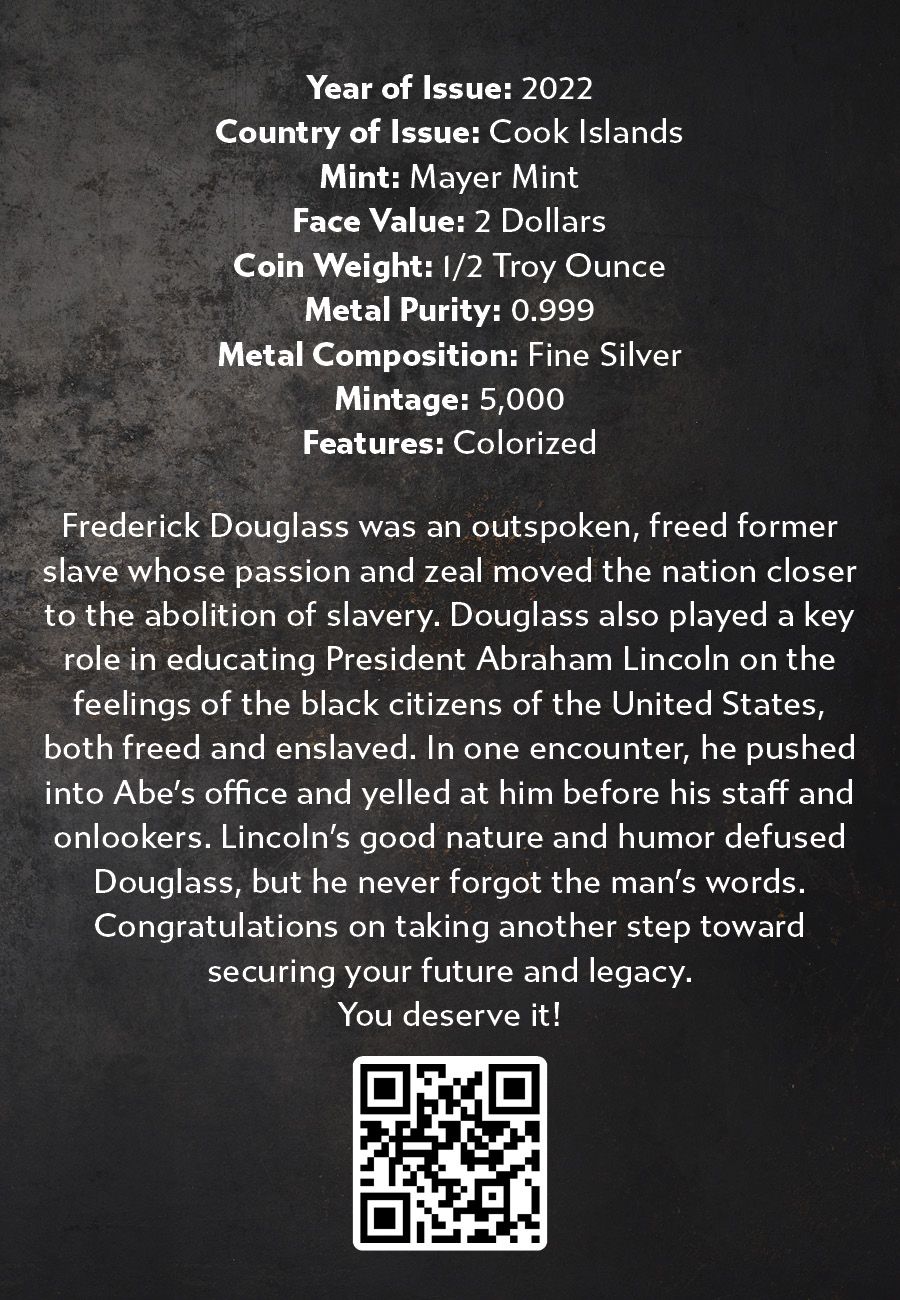 Frederick Douglass was an outspoken, freed former slave whose passion and zeal moved the nation closer to the abolition of slavery. Douglass also played a key role in educating President Abraham Lincoln on the feelings of the black citizens of the United States, both freed and enslaved. In one encounter, he pushed into Abe's office and yelled at him before his staff and onlookers. Lincoln's good nature and humor defused Douglass, but he never forgot the man's words.