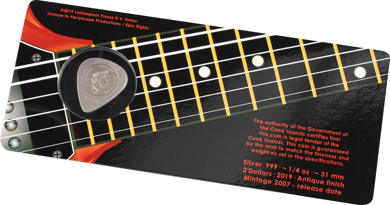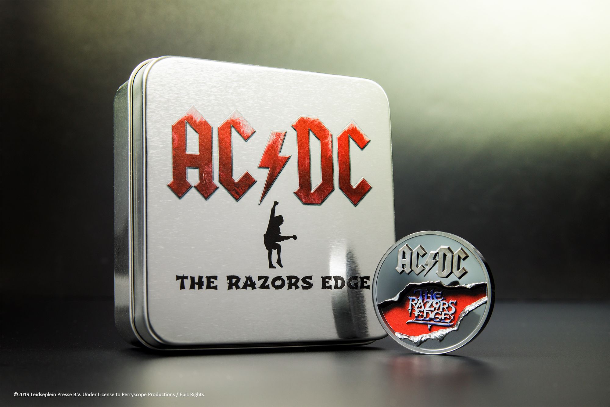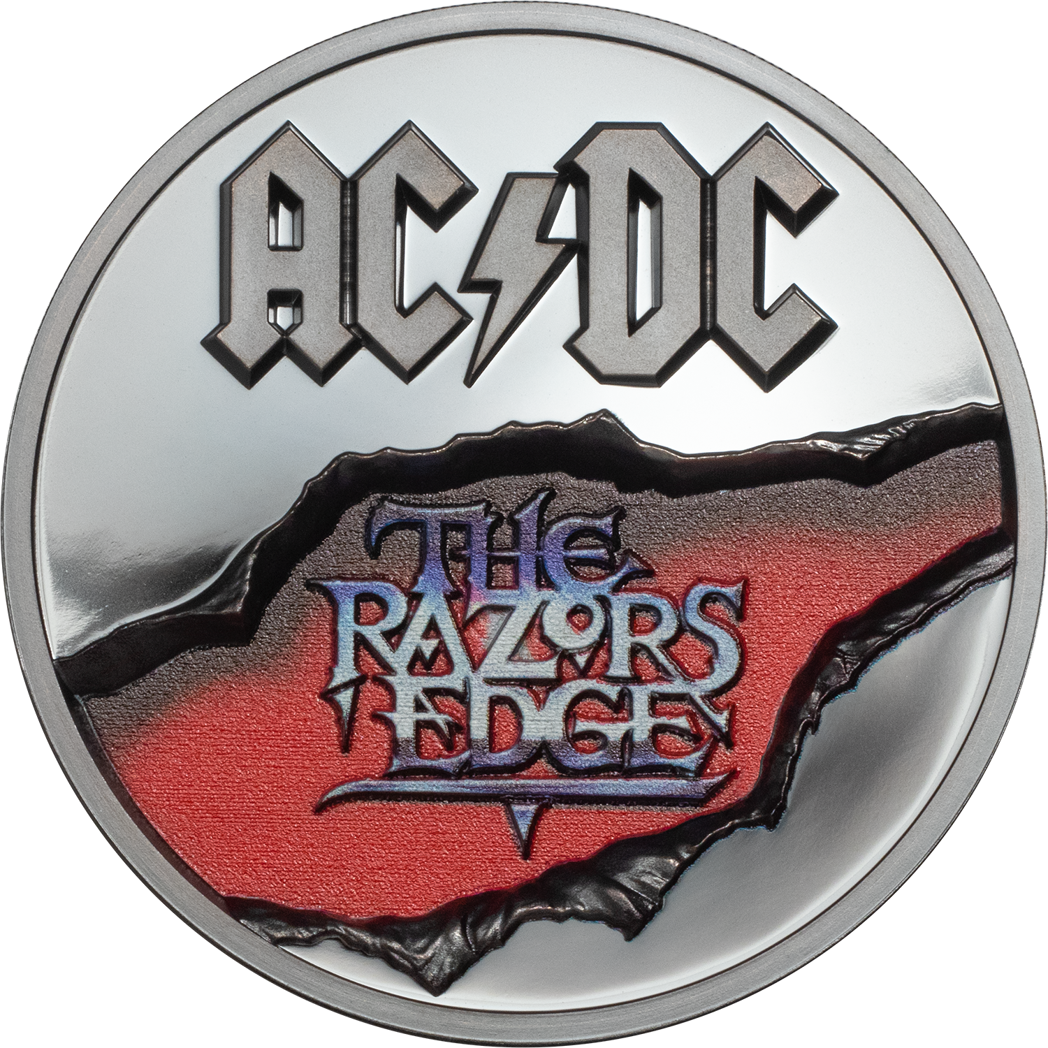Check out the proof finish that is expertly colored in just the right spots and a mind blowing high relief based on our smartminting© technology is a modern 3D version of the original album cover. This 2 oz Razors Edge coin is on the cutting edge of minting technology!