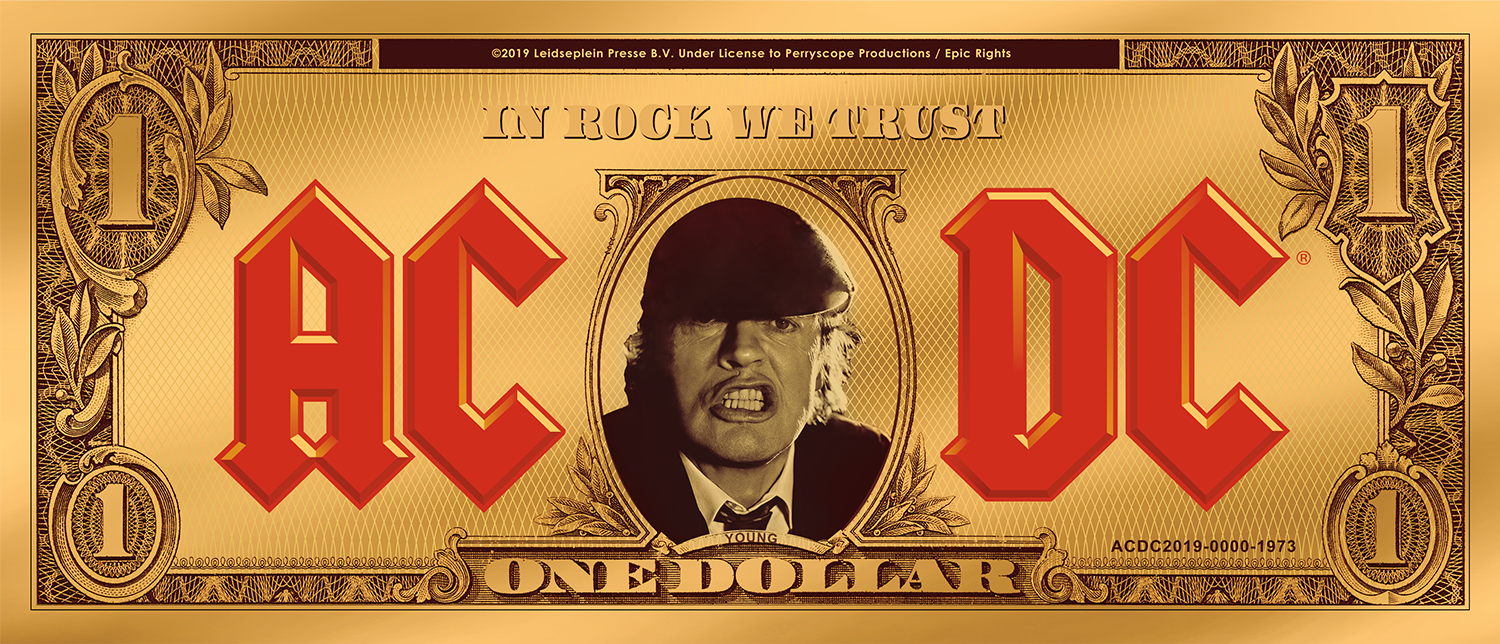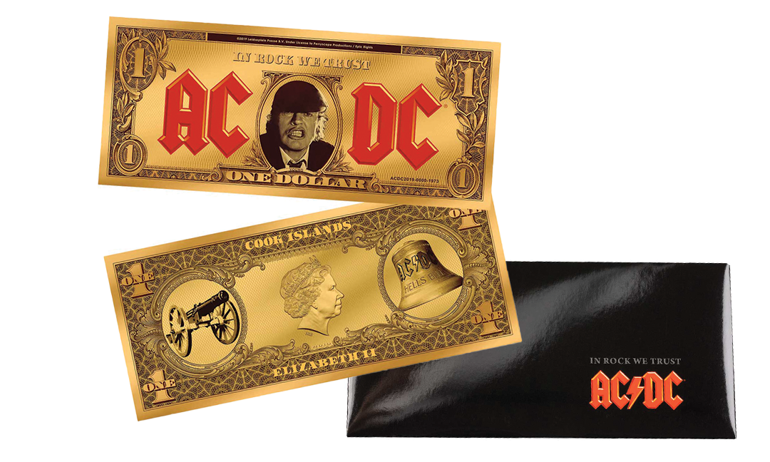 2019 AC/DC In Rock We Trust Angus Buck .1g Gold Foil Note