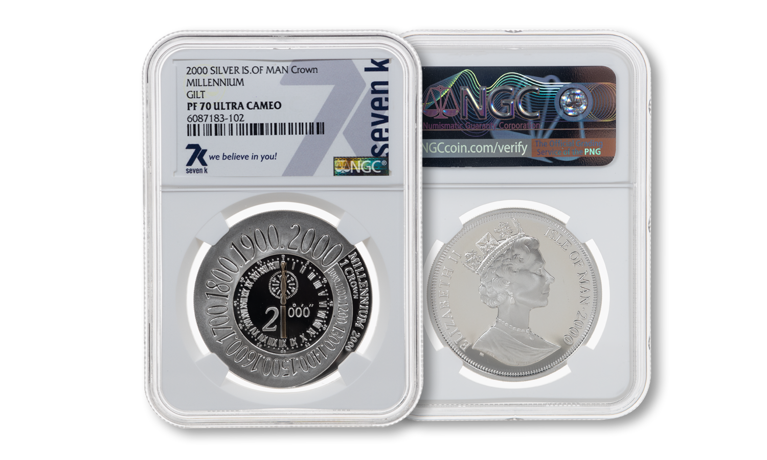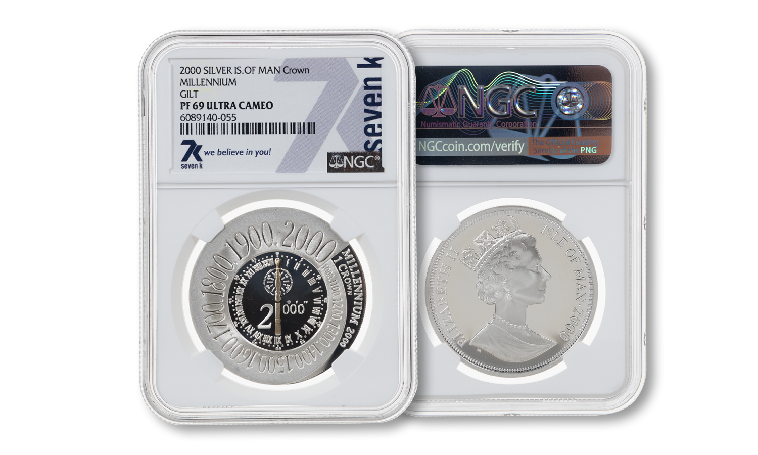 This gorgeous proof coin commemorates the Millennium and the Meridian Line that is the basis of Greenwich Mean Time, the time and date system of the world. The front shows the Old Royal Observatory Clock Face embedded with an actual brass strip from the Original Prime Meridian. In 1998, the physical brass strip was replaced with an electronic one in preparation for the new Millennium. This is a true collector’s coin for the ages.