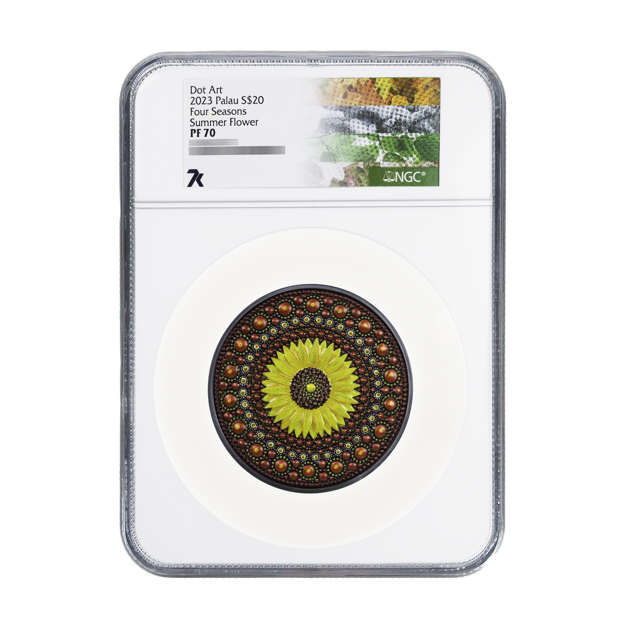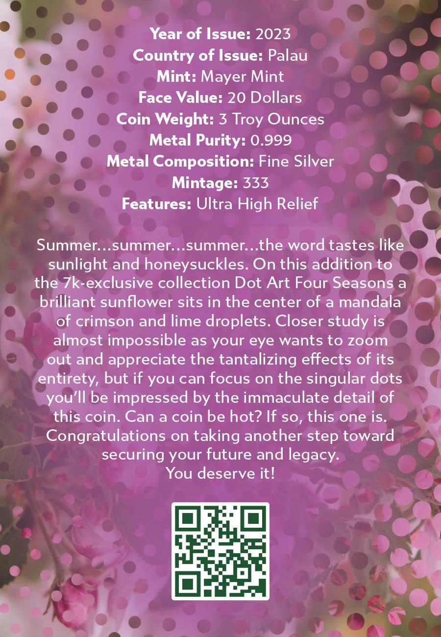 2023 Dot Art Four Seasons Summer Flower Mandala 3 oz Silver Coin PF70