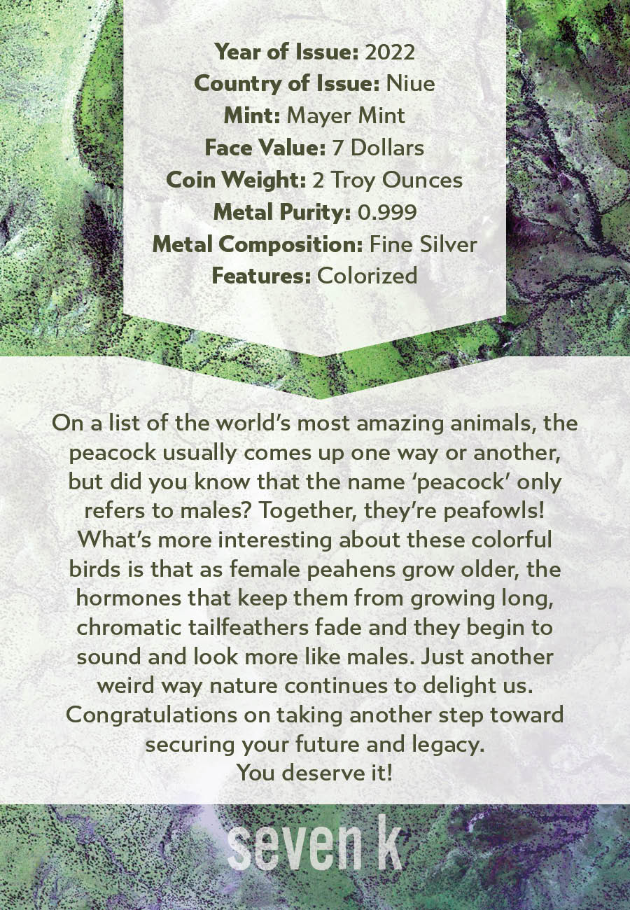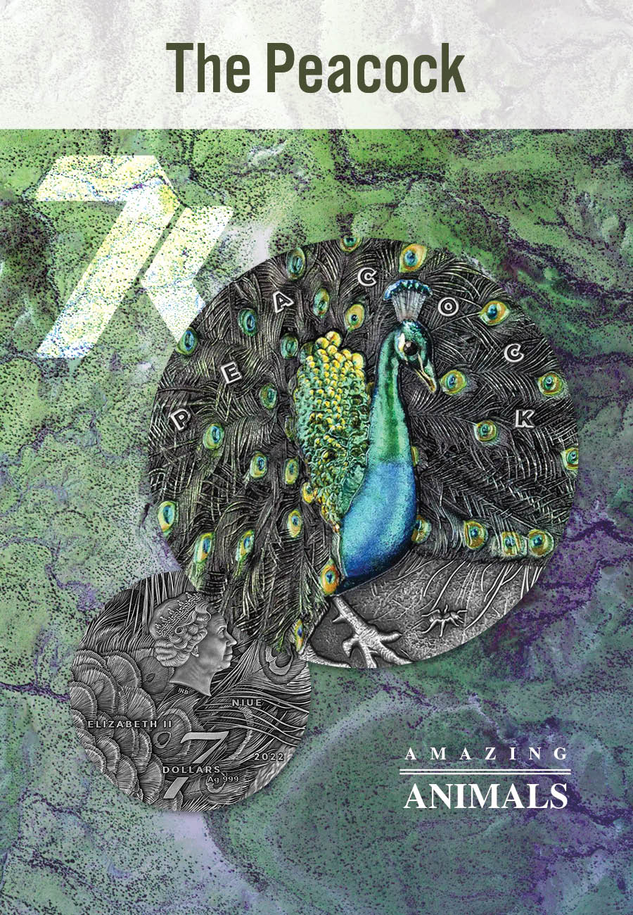 2022 Amazing Animals Peacock 3 oz Silver Coin PF70