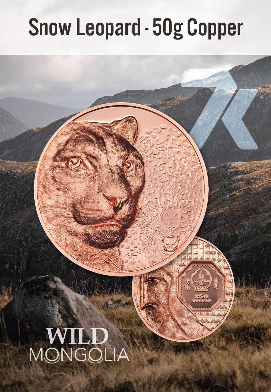 2024 Wild Mongolia – Snow Leopard 50-gram copper PF70
