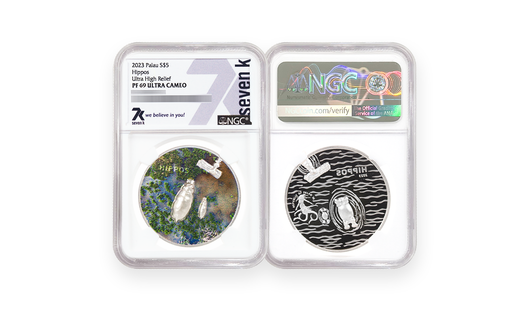 2023 Split Views Hippos 1 oz Silver Coin PF70 & PF69