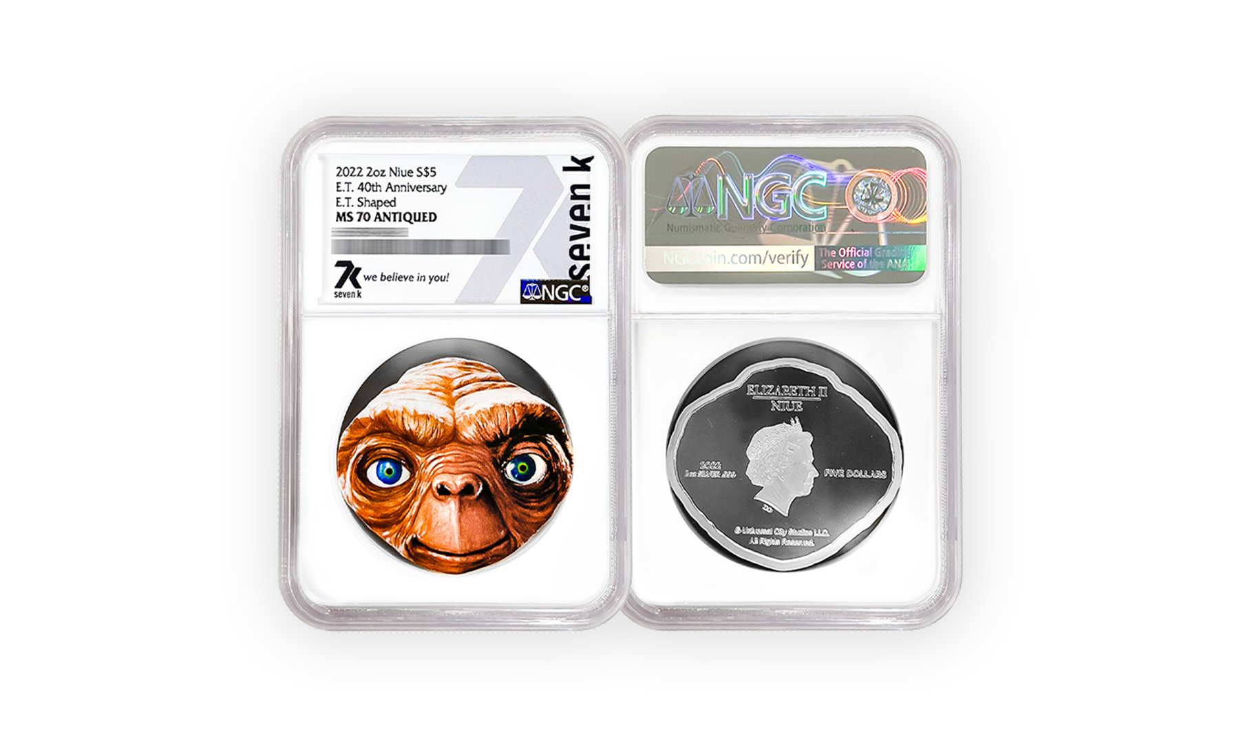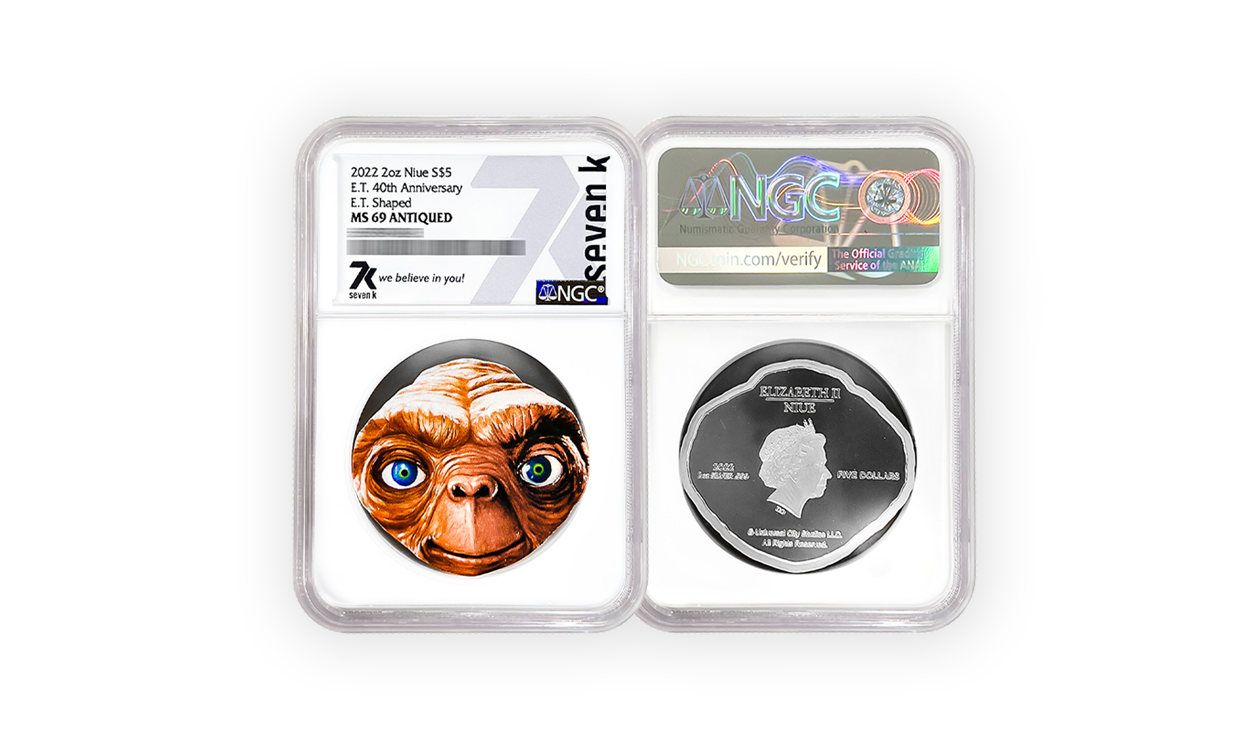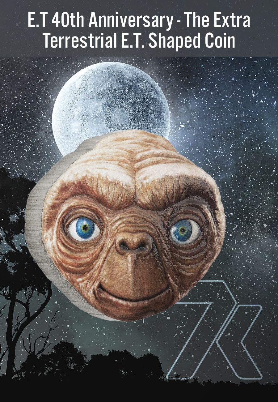 Before the 1982 release of the film, 'E.T.', aliens had really only been portrayed as terrifying overlords, intent on enslaving humanity. With the creation of this stumpy, sweet, curious extra-terrestrial, a new vision was formed. This coin is a special, 2 oz fine silver celebration of the 40th anniversary of E.T.'s debut, featuring Ultra High Relief and a specialized shape. If life is out there, E.T. made us wonder: could it be friendly?