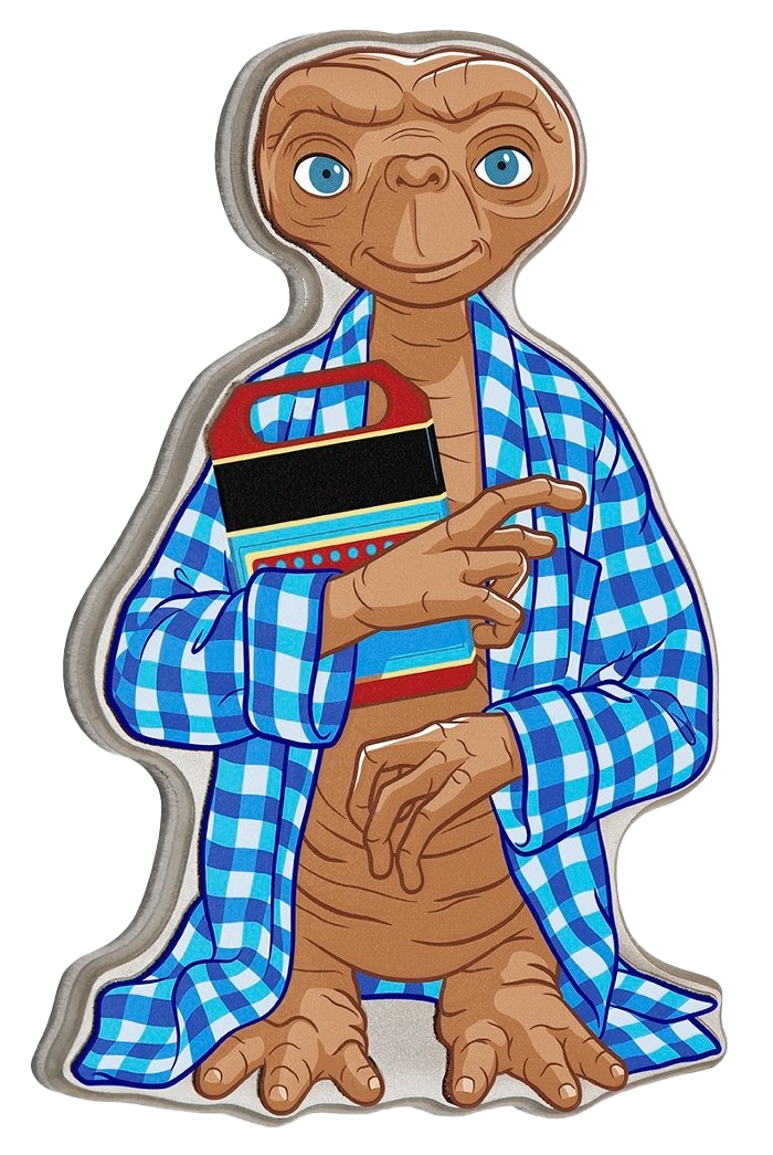 Quick, somebody grab some Reese Pieces! To celebrate the 40th anniversary of your friendly neighborhood extraterrestrial’s debut on the big screen, this extra-special 1-oz silver coin was released with spectacular coloring and an amazing E.T. shape. Making his grand debut in the theaters in 1982, E.T. quickly became a national icon with his glowing finger, fancy costumes, and catchphrase, “E.T. phone home!”