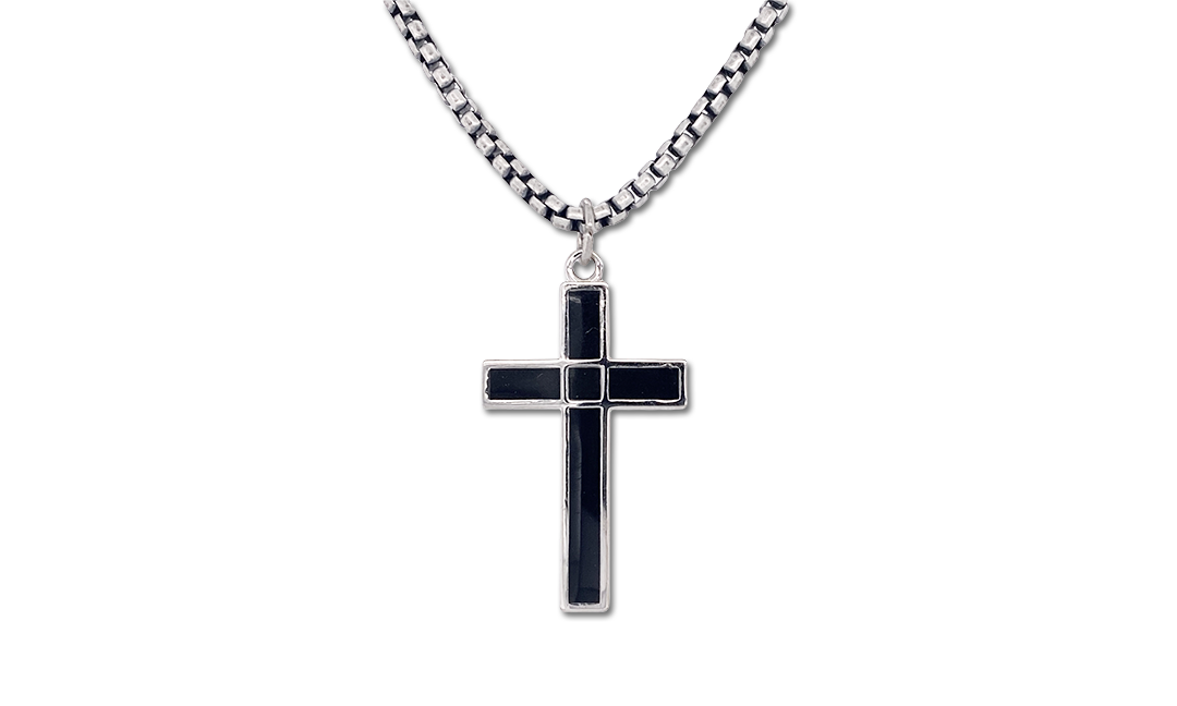 Here's a two-sided cross necklace with a scripture on the back!