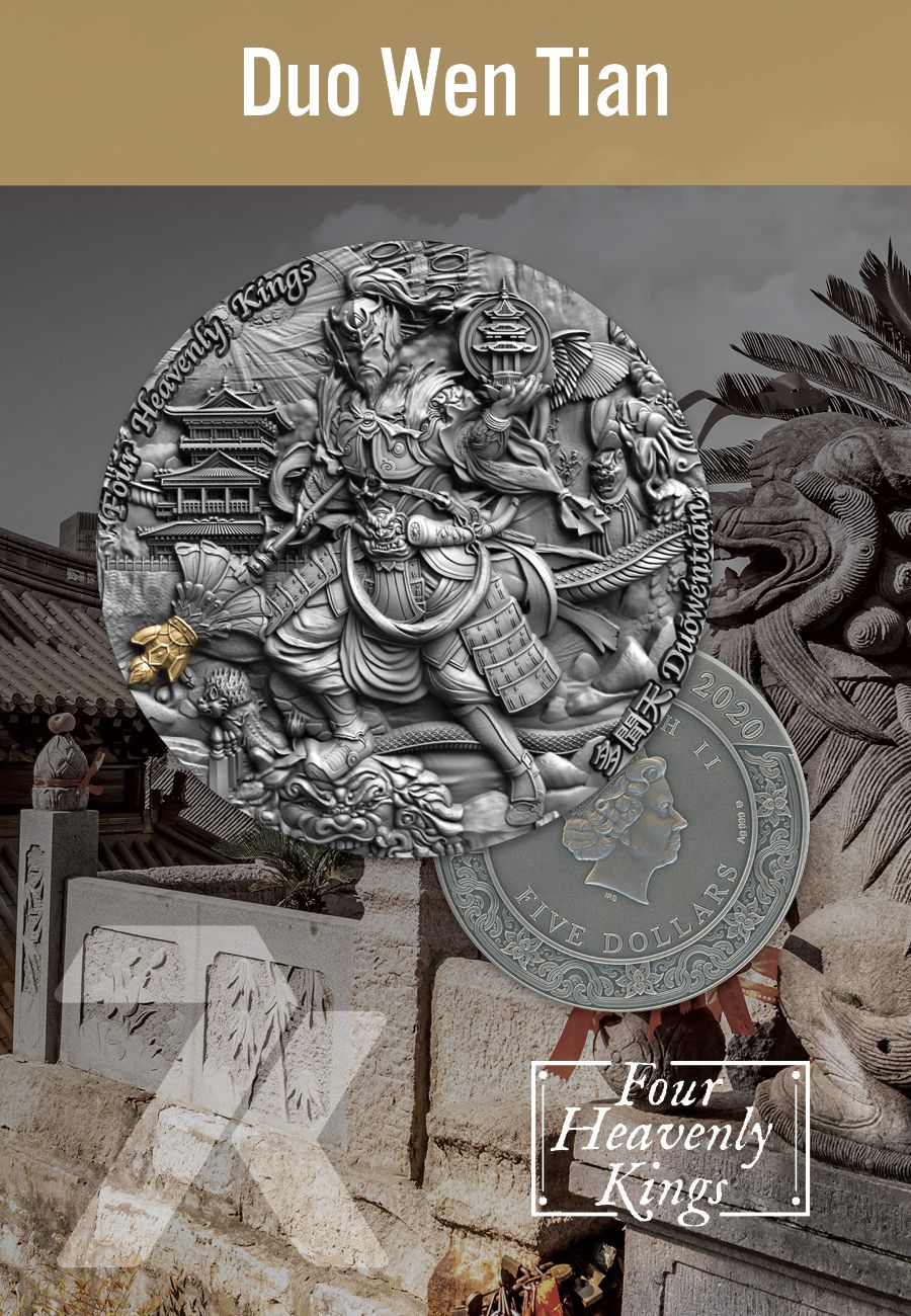 Four Heavenly Kings Duo Wen Tian 2 oz Silver Coin
