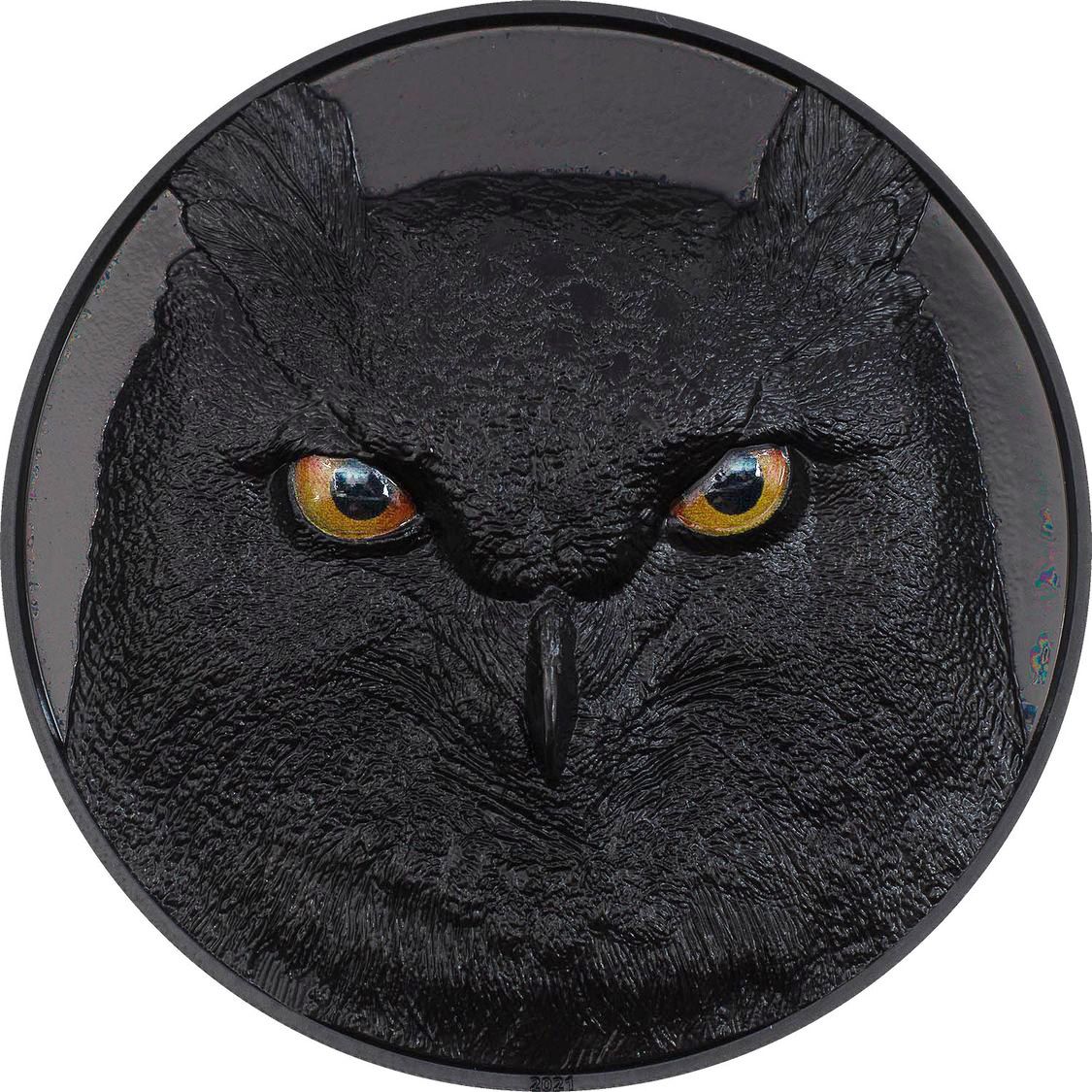 2021 Hunters By Night Eagle Owl 5oz Obsidian Black Proof Silver Coin PF70 & PF69