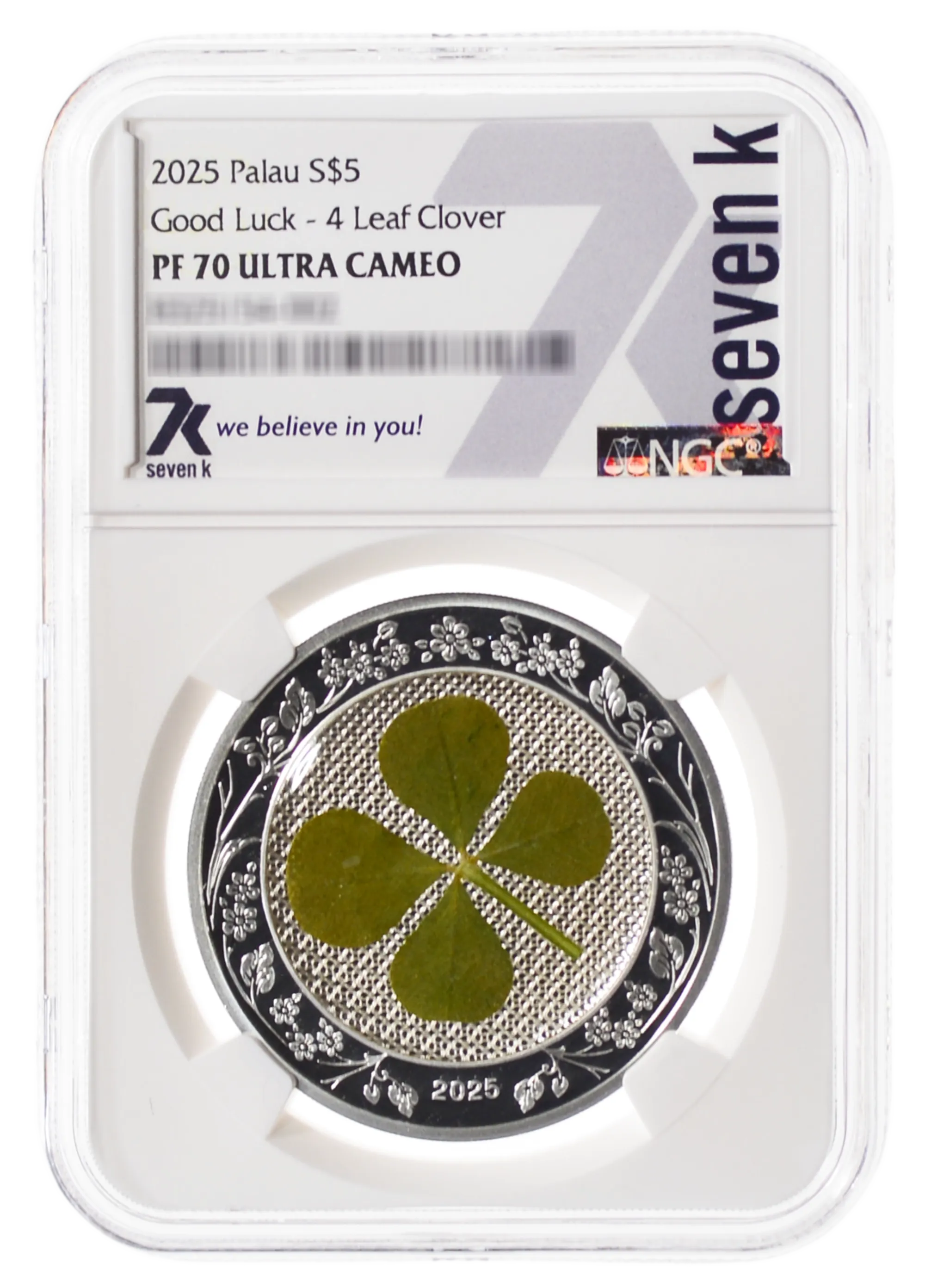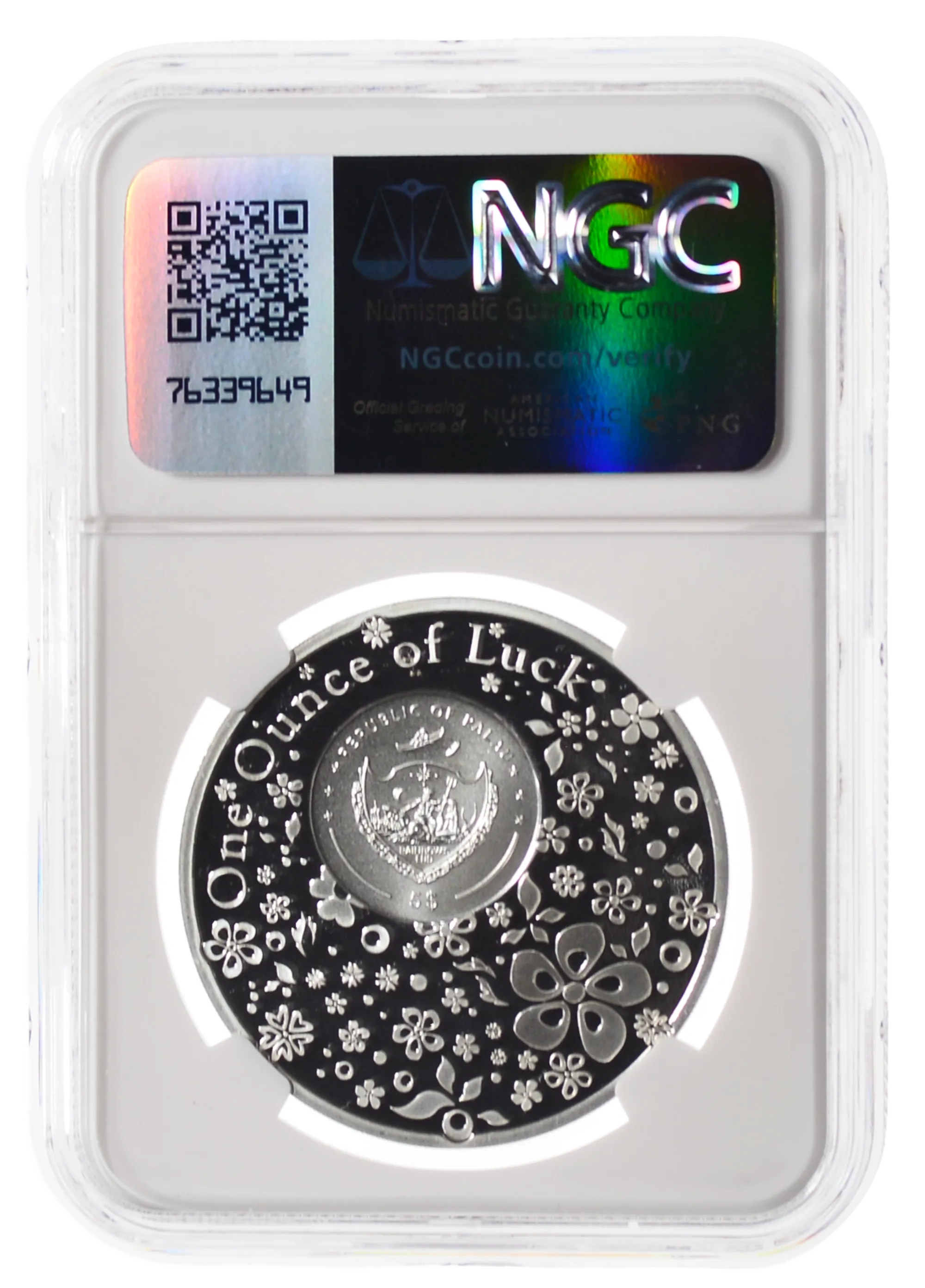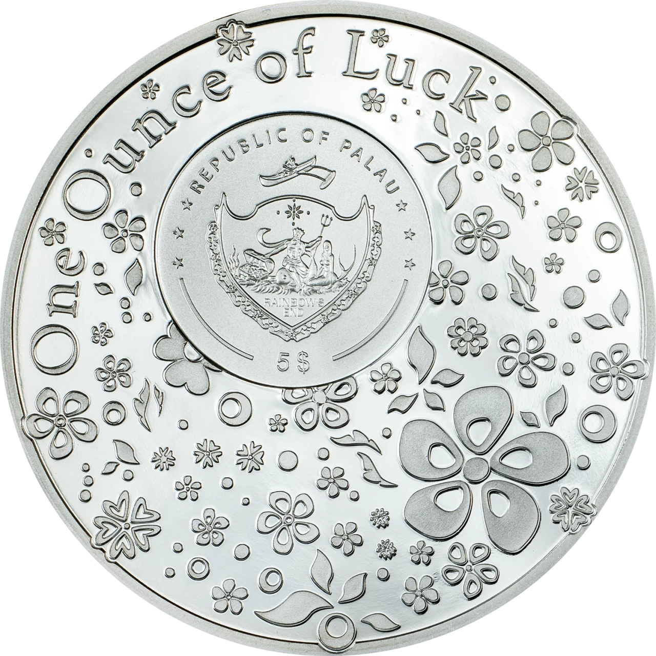 Your search for good fortune ends here—as they say, find a four-leaf clover, and you’ll have good luck! Our 1-oz silver Ounce of Luck coin is sure to bring wonderful things your way. Each coin has a bona-fide clover, but the fun doesn’t end there; flip the coin to the obverse and try to spot the single four-leaf clover hidden amongst the flowers.