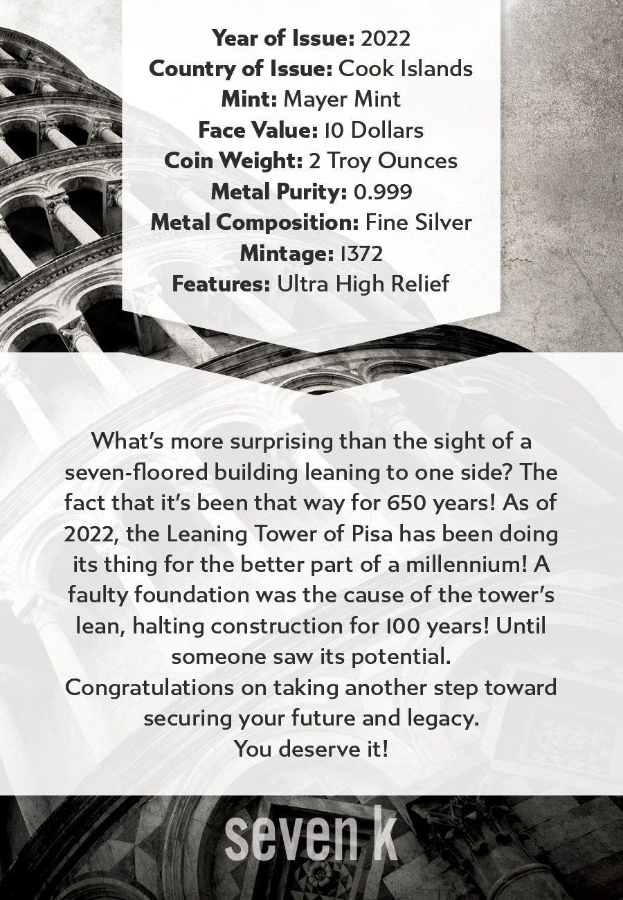 2022 Leaning Tower of Pisa 650th Anniversary 2oz Silver Coin