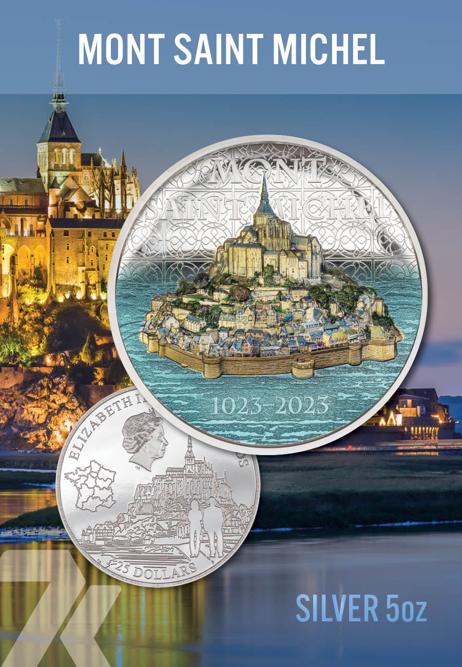 2023 Mont Saint Michel 5 oz Silver Coin PF70 & PF69