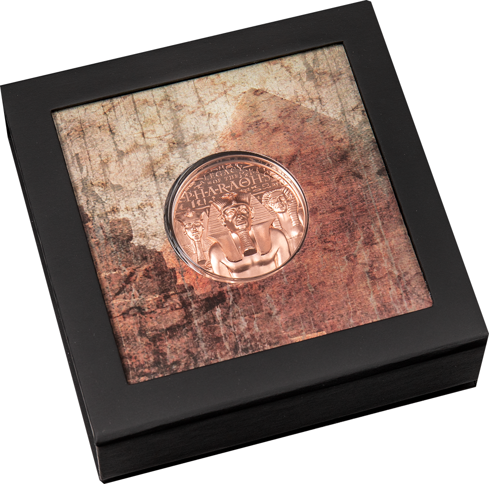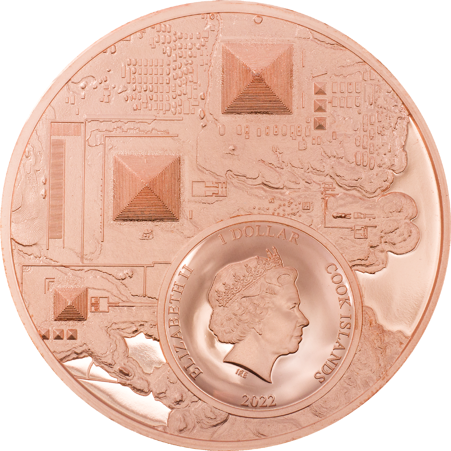 Mummies? Nah, silly! It’s the Ancient Egyptian Pharaohs Akhenaten, Thutmosis III, and Sobekneferu, one 50 grams of pure copper. These guys and gal—yes, you heard us right, Queen Sobekneferu was a lady—were pretty influential leaders in their day. Pyramids were constructed under their rule. Enjoy the bird’s eye view of the legacy of some of the greatest Egyptian Pharaohs on the obverse of the coin as well. It's not bad on the eyes!