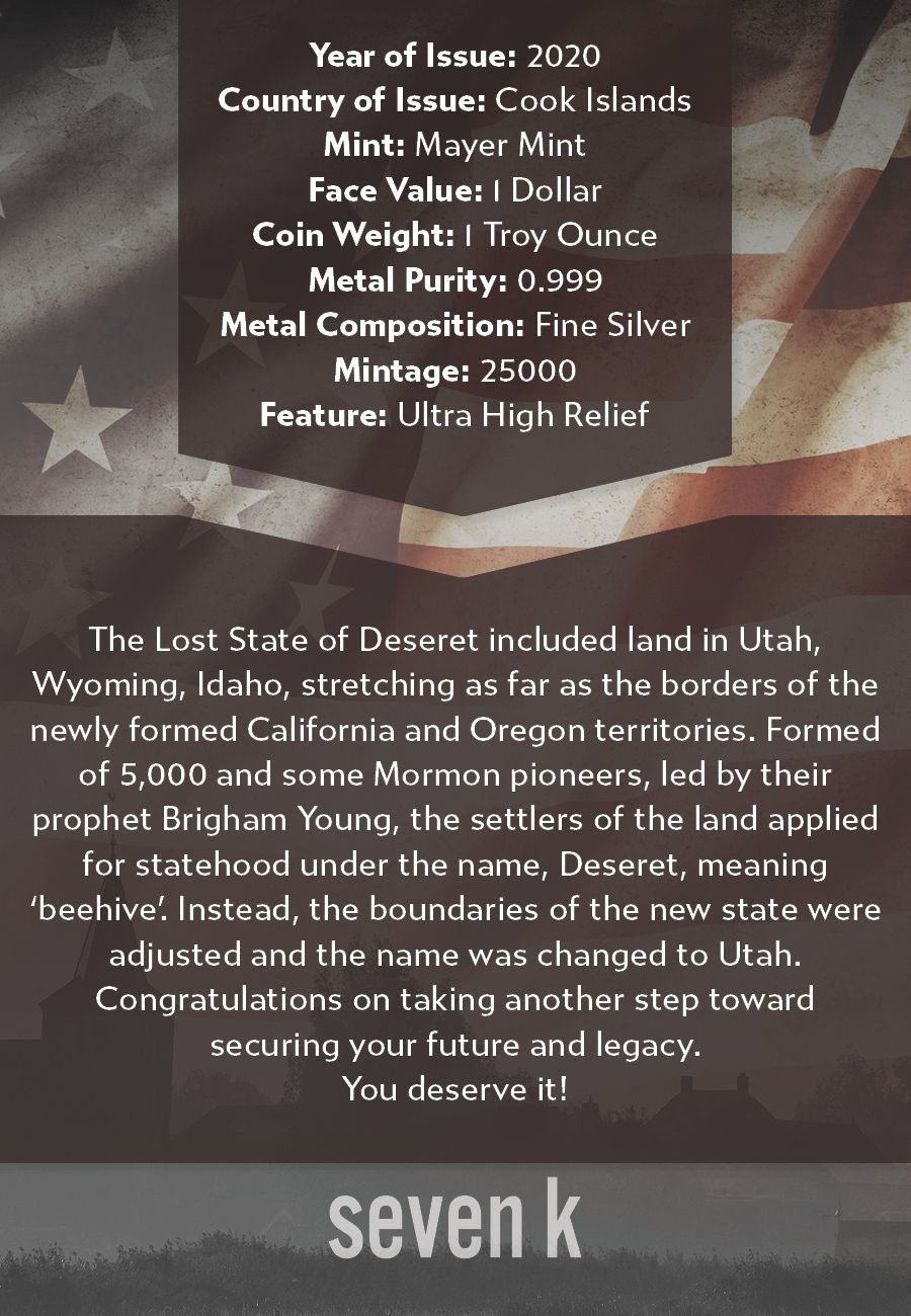 2020 Lost States of America Deseret 1 oz Silver Coin