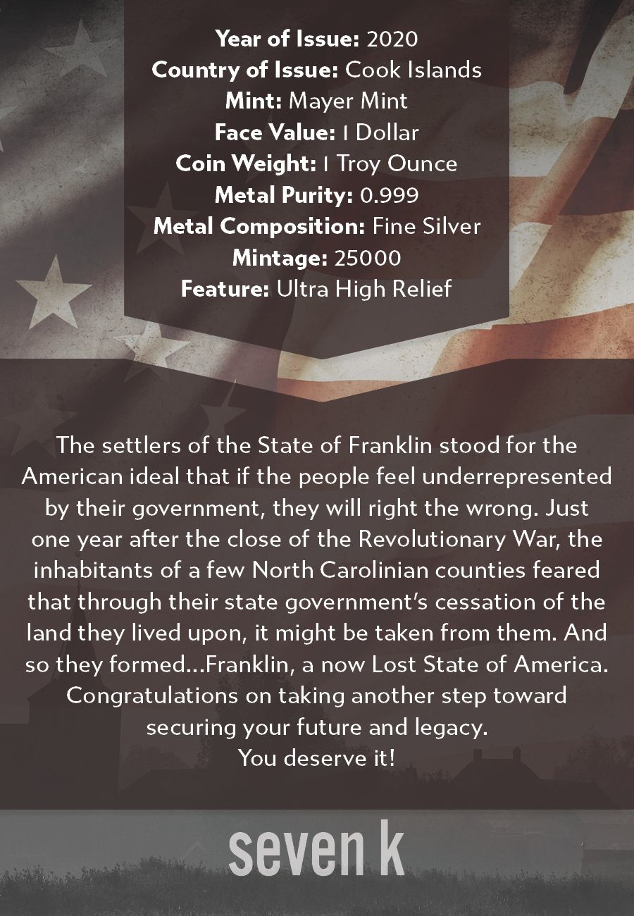 2020 Lost States of America Franklin 1 oz Silver Coin