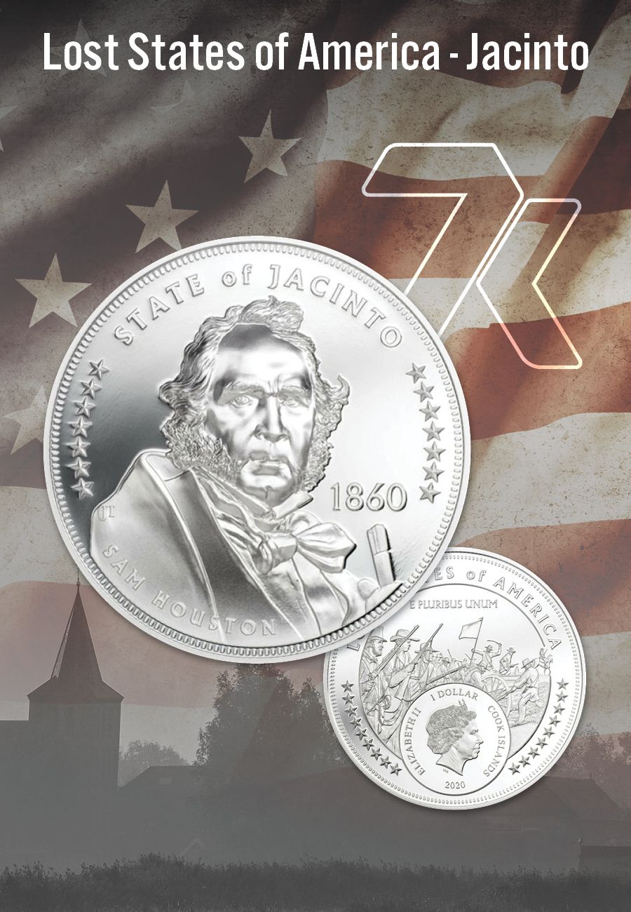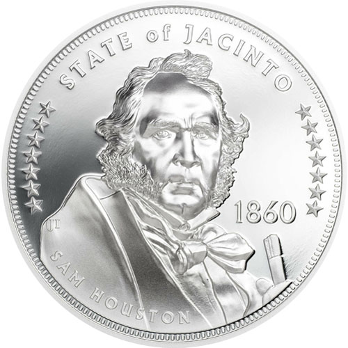 The Republic of Texas was liberated from Mexico with the victory by General Sam Houston and his troops at the Battle of San Jacinto. Upon joining the United States of America, Texas would become the big, bold state we all know today. But had Sam Houston and his men had their way, it would have gone by the name that inspired this 1 oz addition to the Lost States of America coin series... Jacinto.
