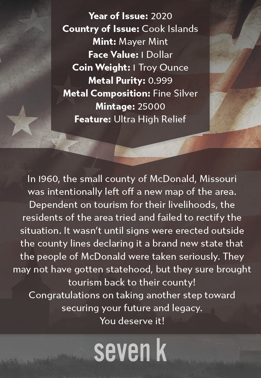 2020 Lost States of America McDonald 1 oz Silver Coin