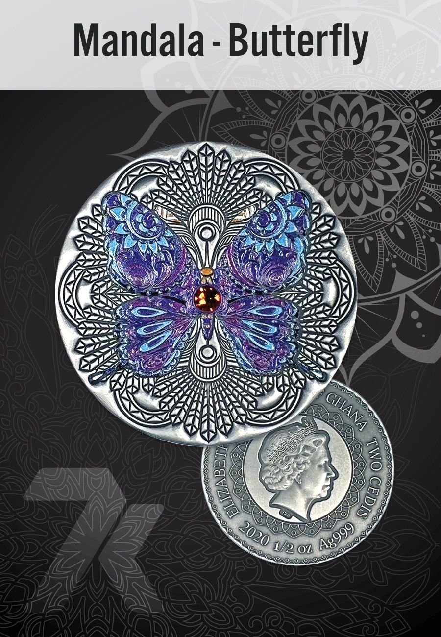 2020 Mandala Animals Butterfly 1/2 oz Silver Coin
