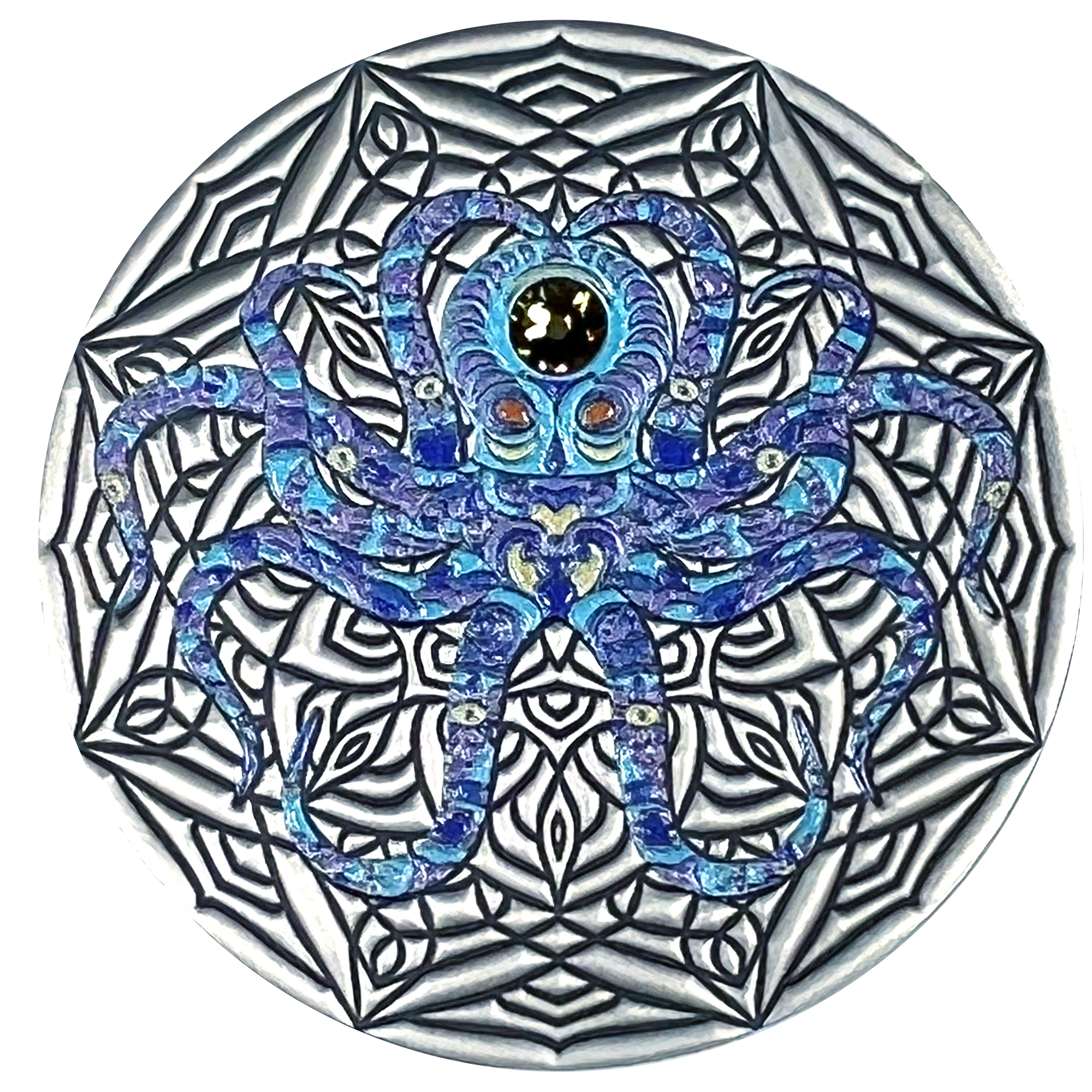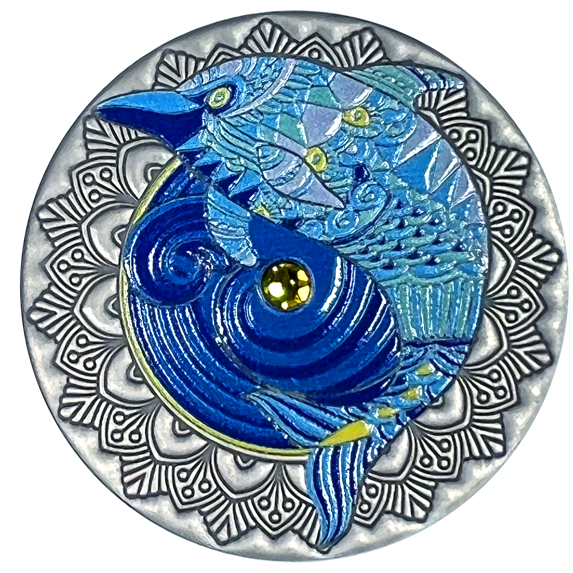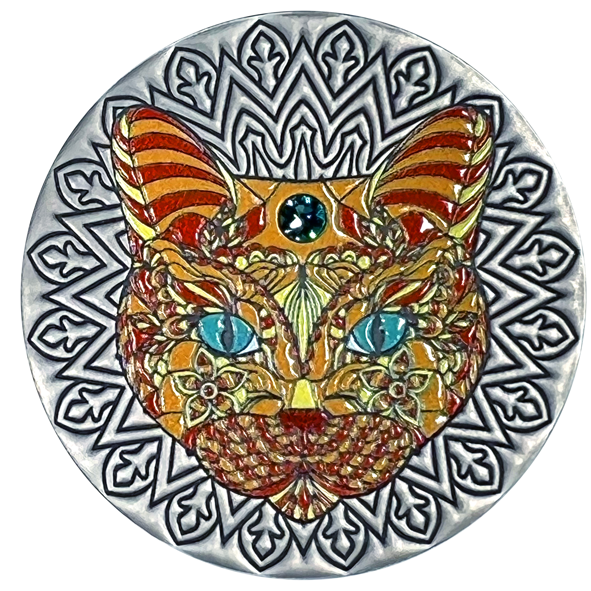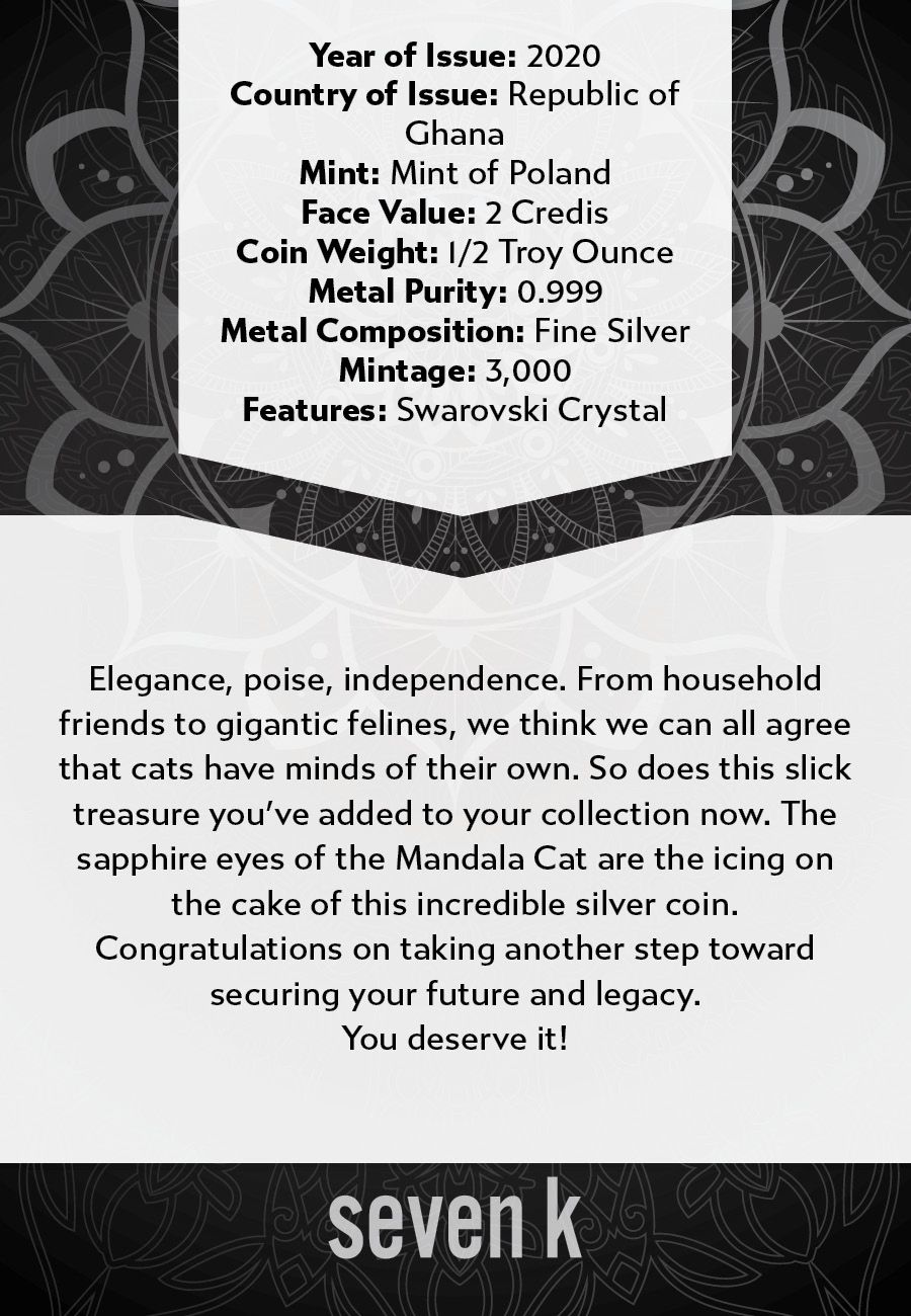 Elegance, poise, independence. From household friends to gigantic felines, we think we can all agree that cats have minds of their own. So does this slick treasure you've added to your collection now. The sapphire eyes of the Mandala Cat are the icing on the cake of this incredible silver coin.