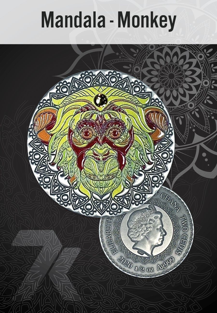 2020 Mandala Animals Monkey 1/2 oz Silver Coin