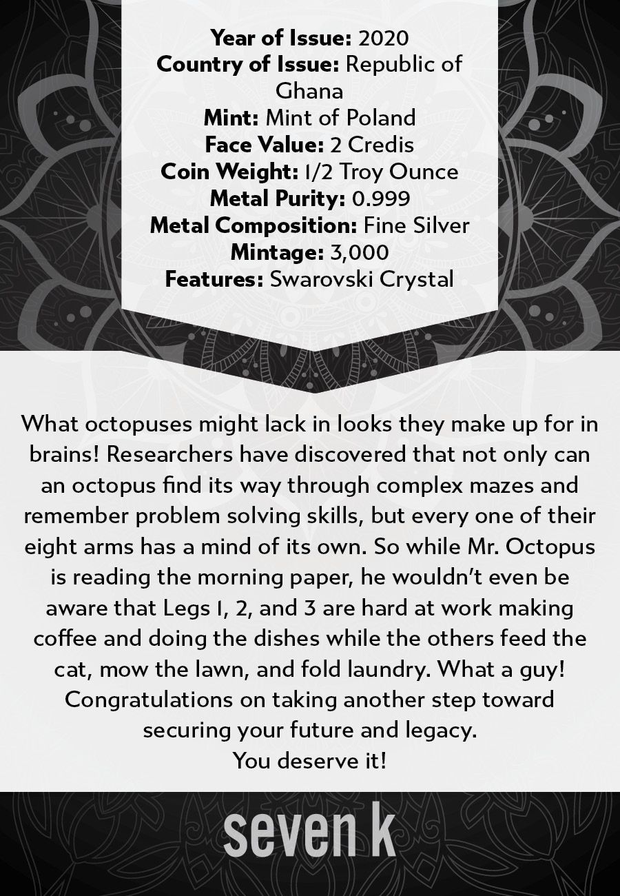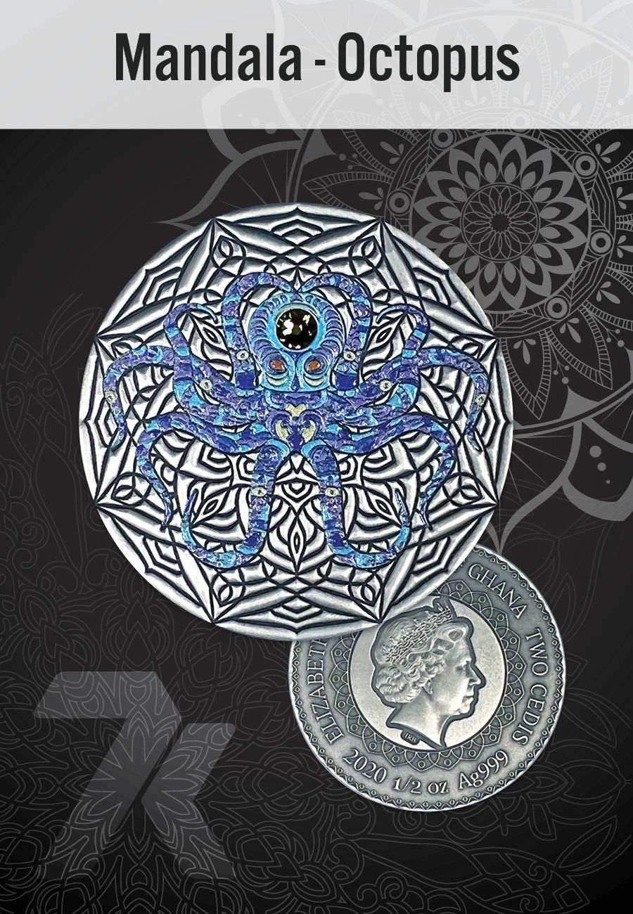 2020 Mandala Animals Octopus 1/2 oz Silver Coin