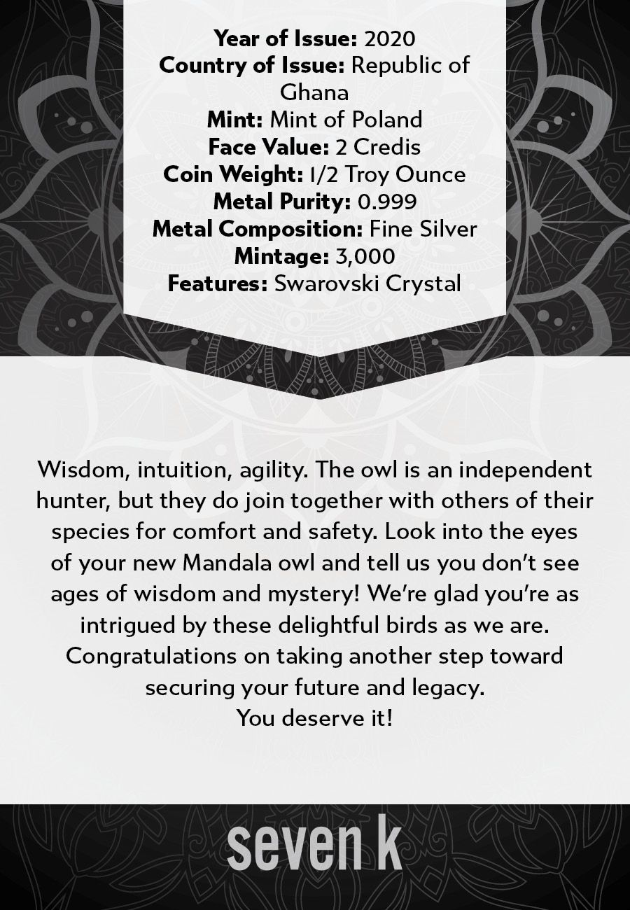 Introducing the Mandala Animals Coin Collection! Sixteen different 1/2oz silver coins featuring mandala designs that represent animals. 7k has the exclusive rights to sell these in the United States, so getting them anywhere else will be near impossible for our US members.