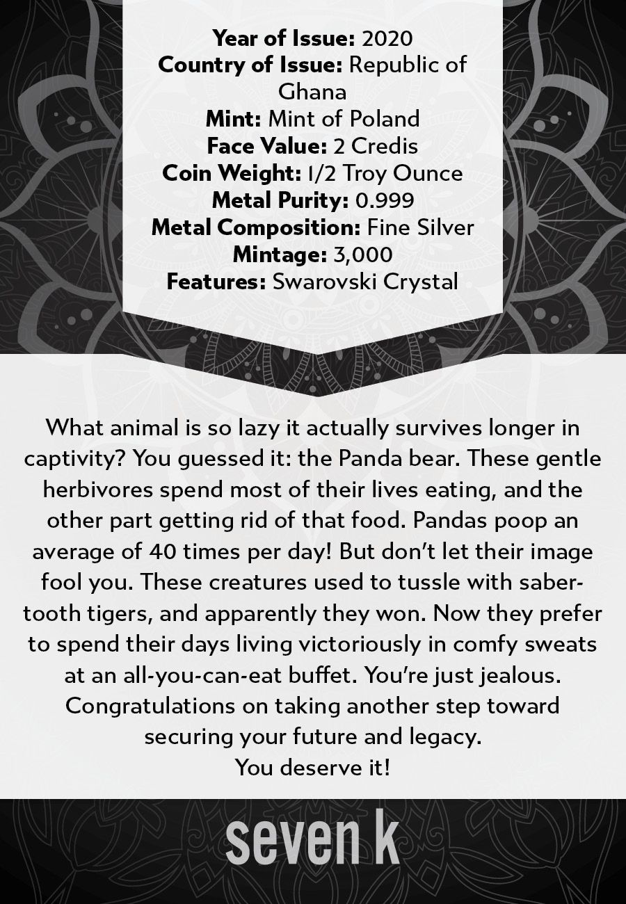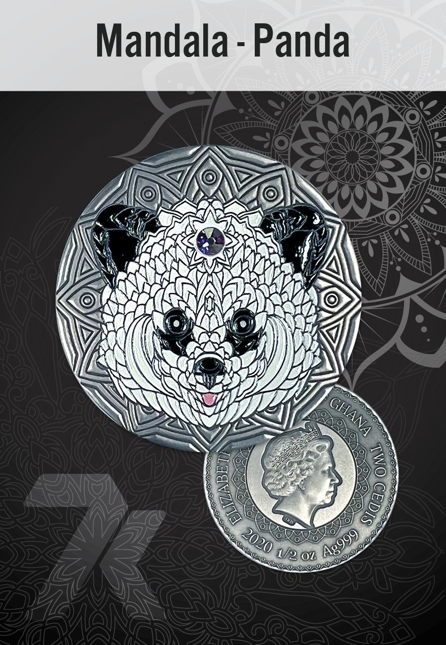 2020 Mandala Animals Panda 1/2 oz Silver Coin