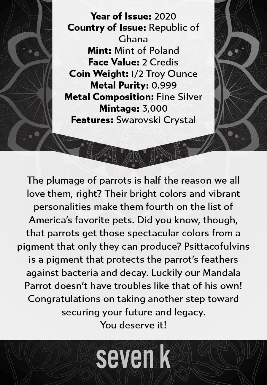 2020 Mandala Animals Parrot 1/2 oz Silver Coin