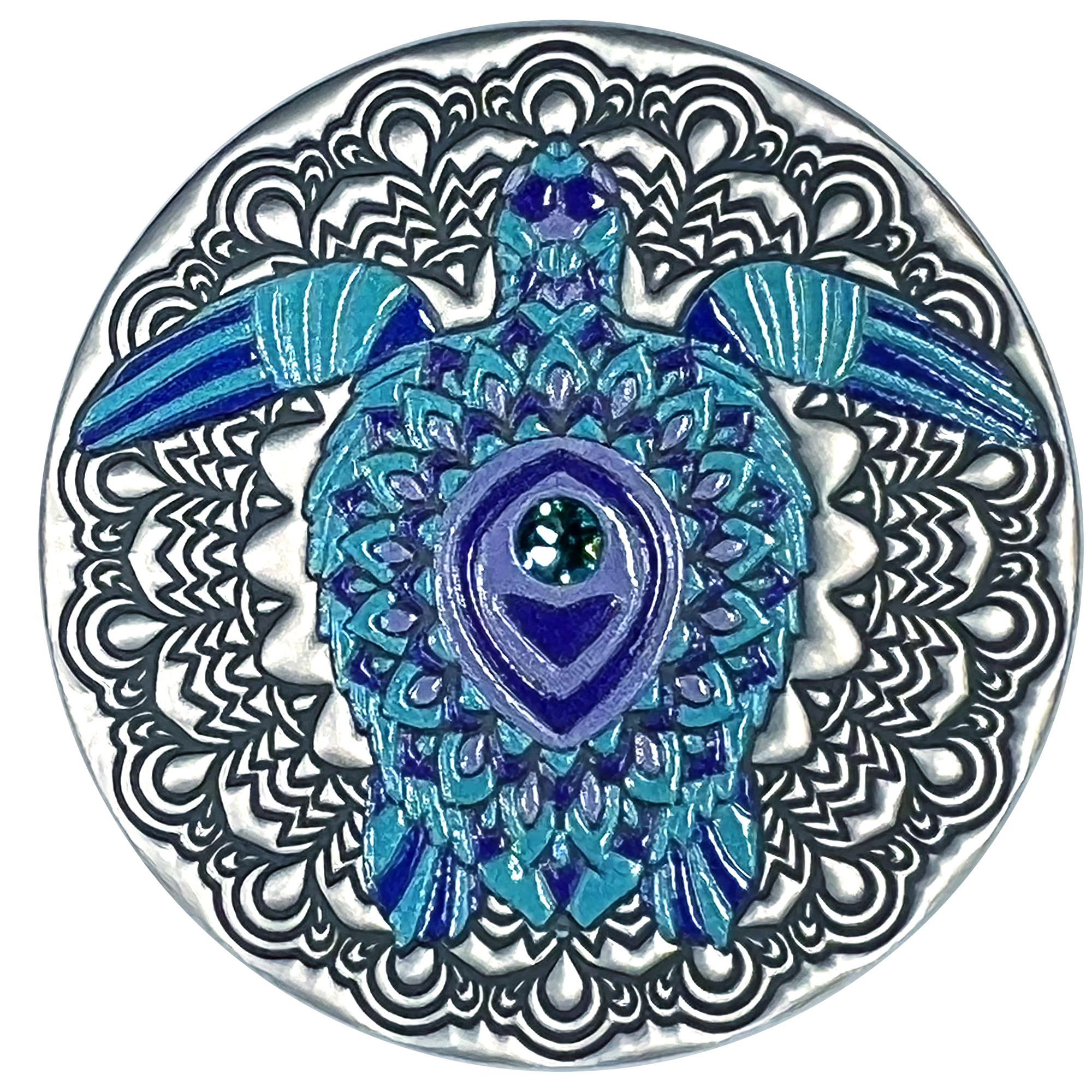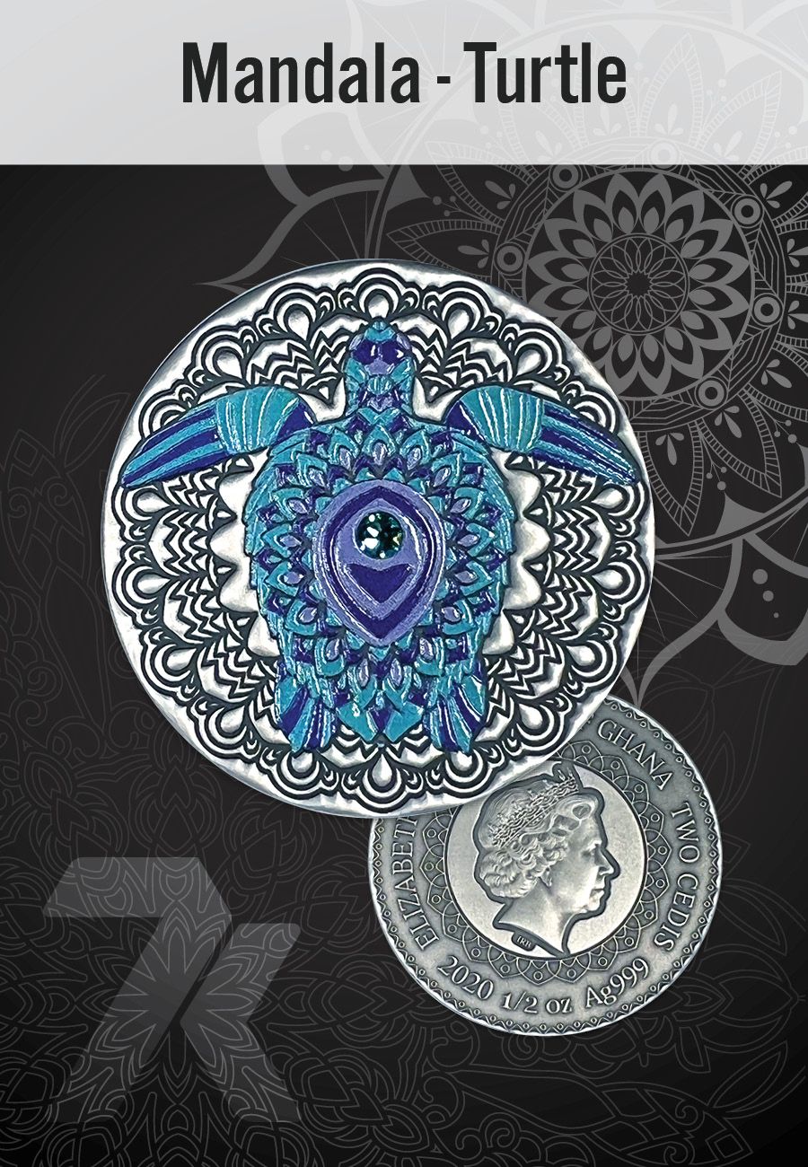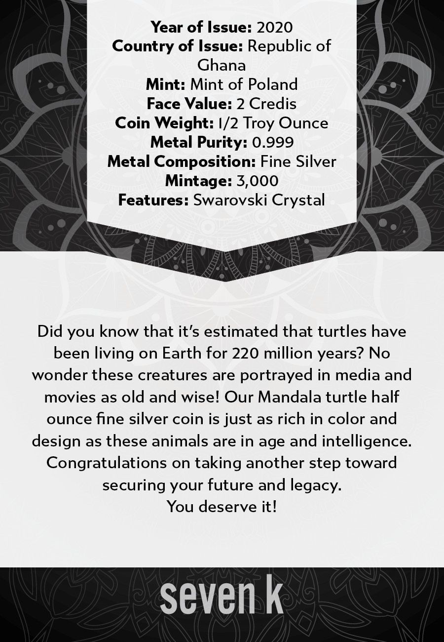 Did you know that it's estimated that turtles have been living on Earth for 220 million years? No wonder these creatures are portrayed in media and movies as old and wise! Our Mandala turtle half ounce fine silver coin is just as rich in color and design as these animals are in age and intelligence.