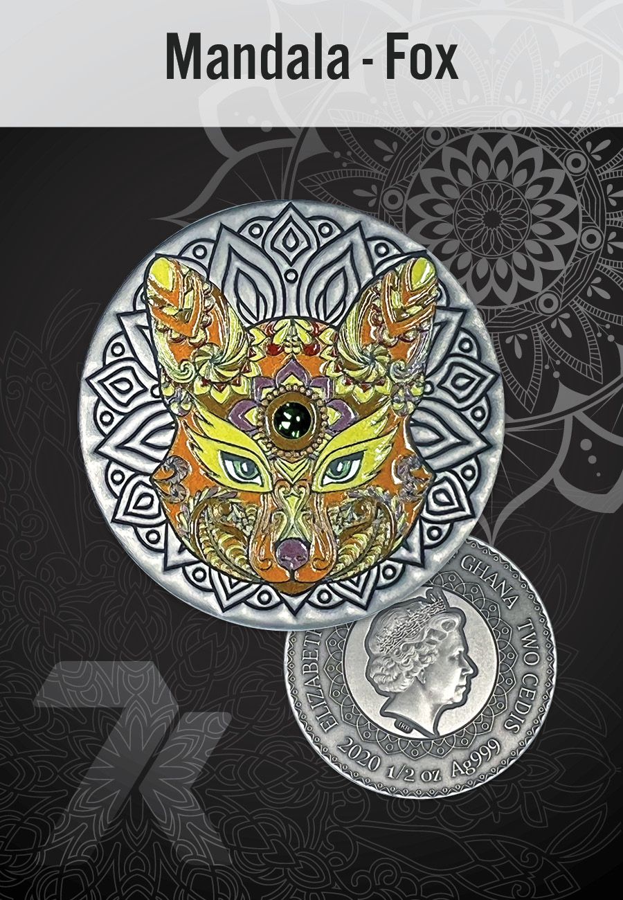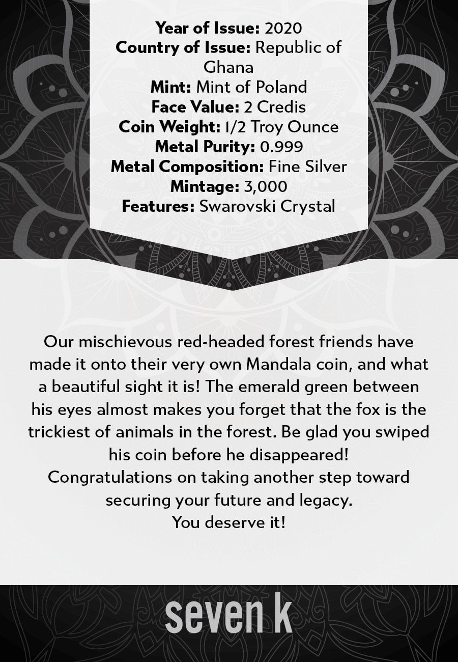 Our mischievous red-headed forest friends have made it onto their very own Mandala coin, and what a beautiful sight it is! The emerald green between his eyes almost makes you forget that the fox is the trickiest of animals in the forest. Be glad you swiped his coin before he disappeared!