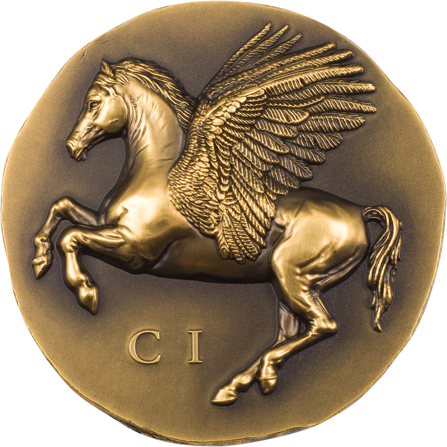 For the first time since the incredible Numismatic Icons collection began, gold is being introduced. This rendition of the Pegasos coins minted in the ancient Greek city-state of Corinth is made of one ounce of pure, solid gold. The Antique Finish brings a rustic, immemorial feel to the coin, almost as if it's reaching back into the past. This collection continues to revitalize history and stun collectors!