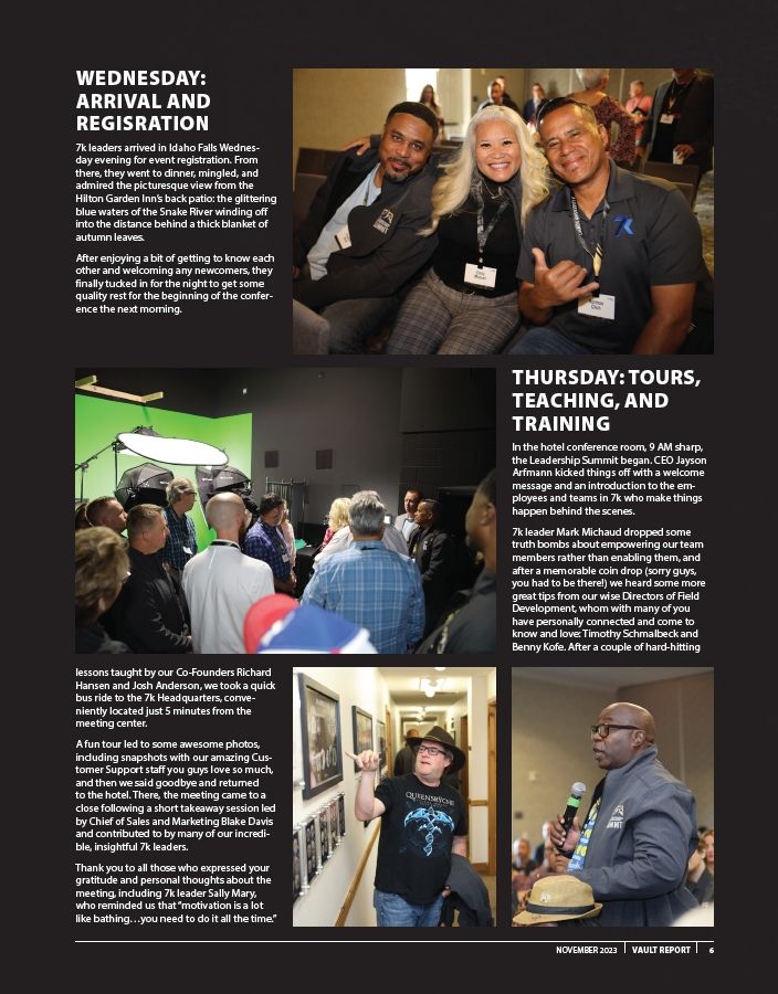 If there’s one takeaway from 7k Leadership Summit 2023 in Idaho Falls, Idaho, it’s that 7k is a team with many different parts. Not one is more important than another; every one adds to the whole’s success. Like a sports team, we need every teammate to recognize the mission, believe in the goal, and fulfill their role if we want to win.