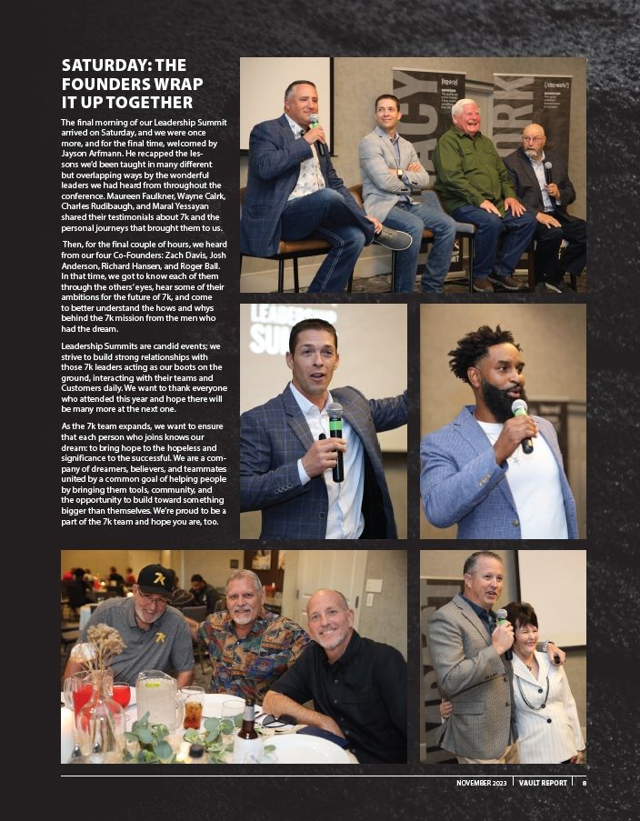 Then, for the final couple of hours, we heard from our four Co-Founders: Zach Davis, Josh Anderson, Richard Hansen, and Roger Ball. In that time, we got to know each of them through the others’ eyes, hear some of their ambitions for the future of 7k, and come to better understand the hows and whys behind the 7k mission from the men who had the dream.