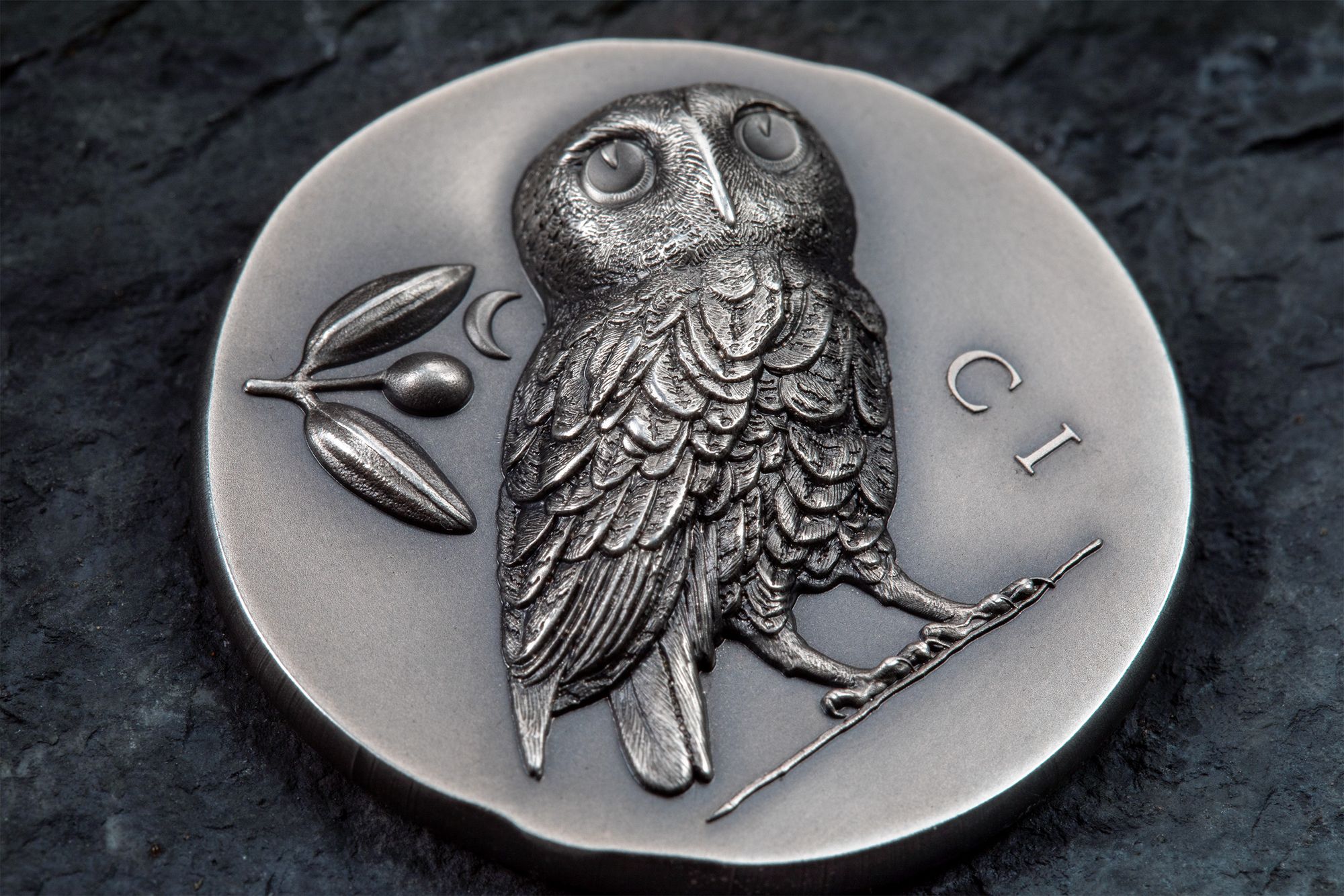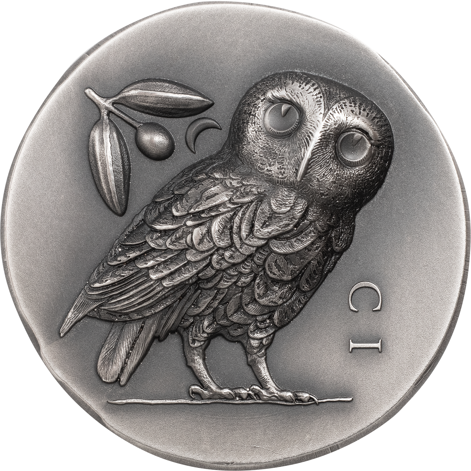 The Athenian Owl tetradrachm, renamed after the Greek goddess of wisdom, is arguably the most popular and recognized ancient coin in the world. It was originally worth about a week's pay for Greek soldiers. President Teddy Roosevelt is said to have carried one as a good luck token. This new version is stunning in its ultra high relief.