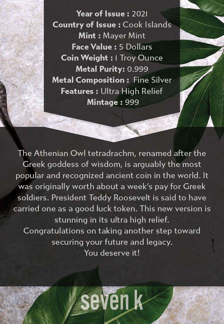 2021 Numismatic Icons Athena's Owl 1oz Silver Coin