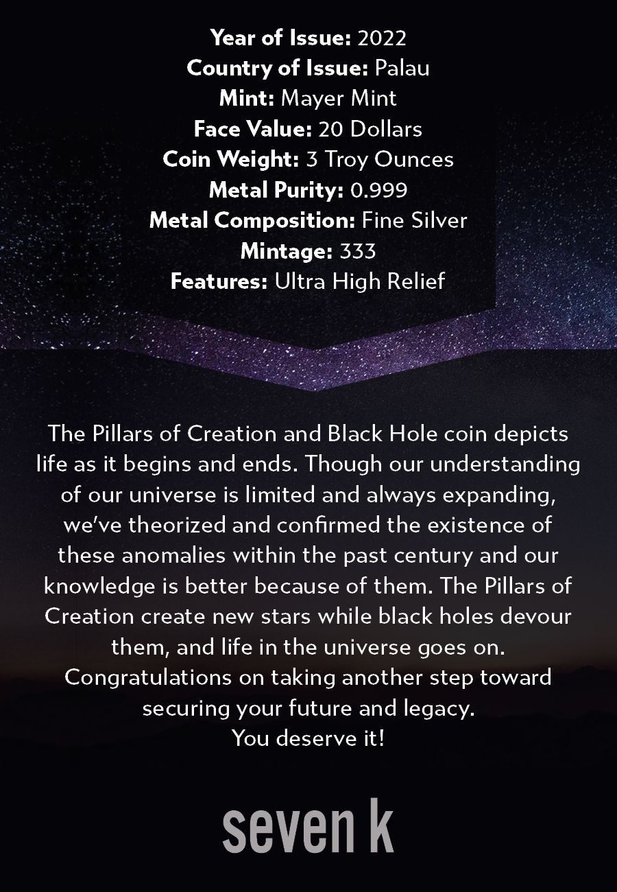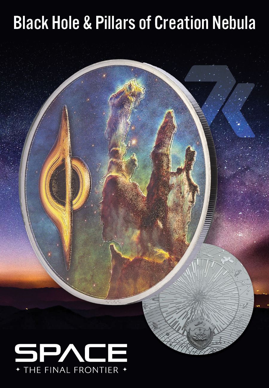 2022 Space the Final Frontier Black Hole & Pillars of Creation Nebula 3 oz Silver Coin PF70