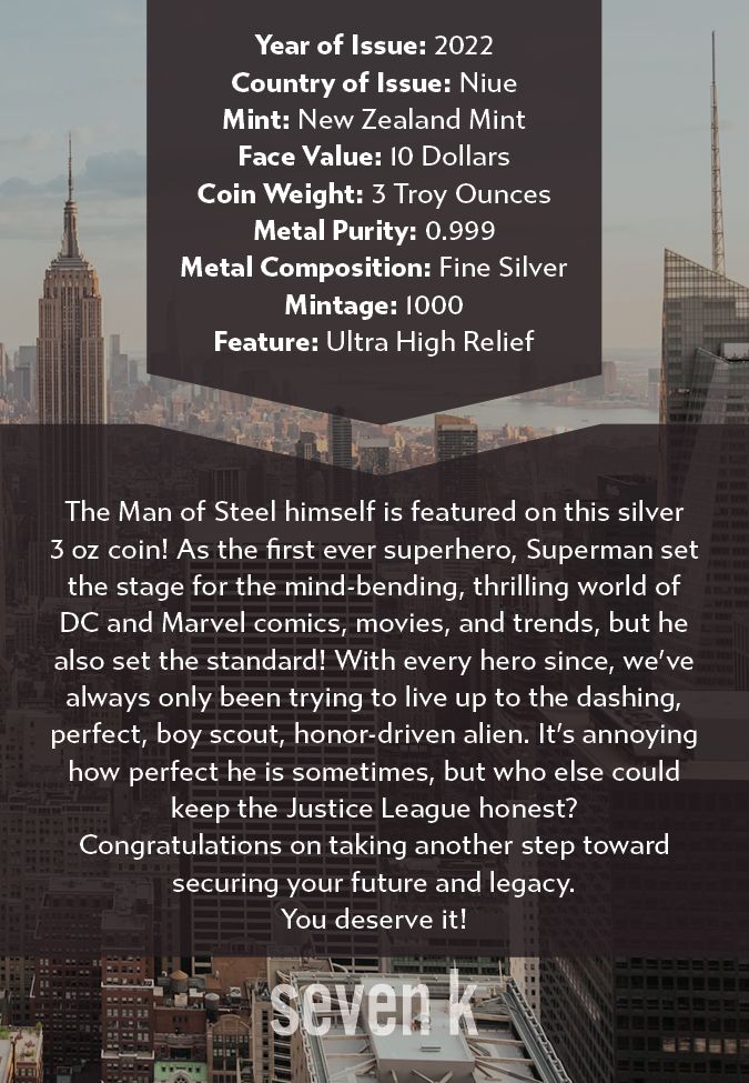 2022 DC Comics Superman 3 oz Silver Coin PF70 & PF69