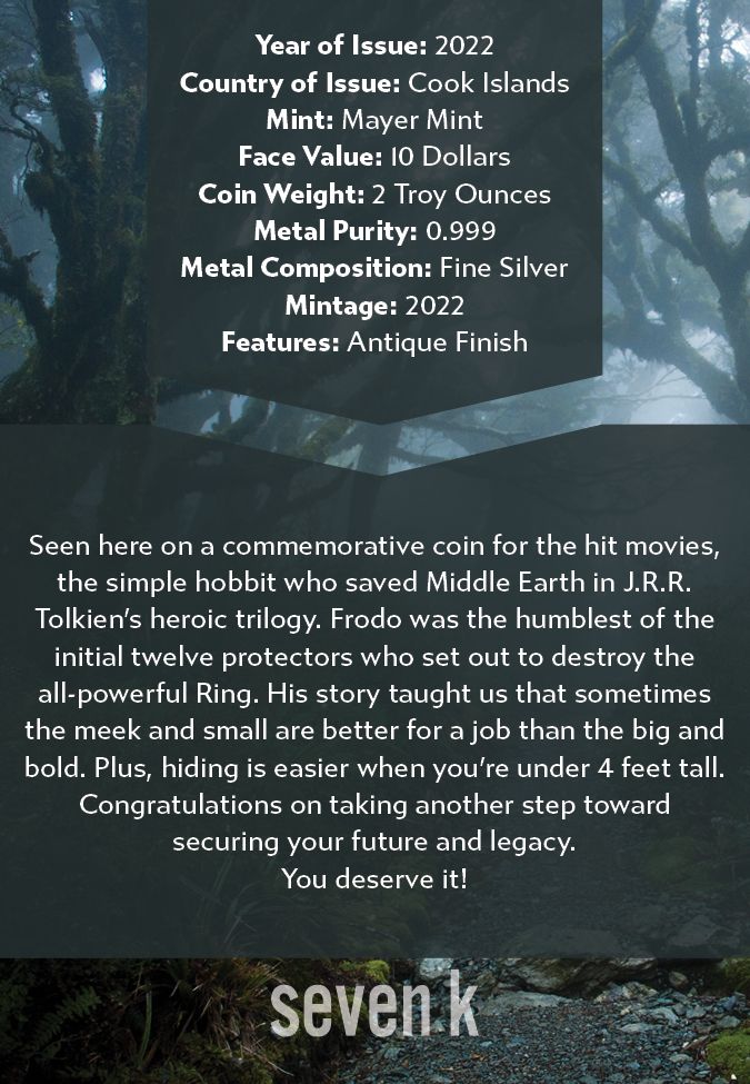2022 Lord Of The Rings Frodo Baggins 2 oz Silver Coin MS70 & MS69