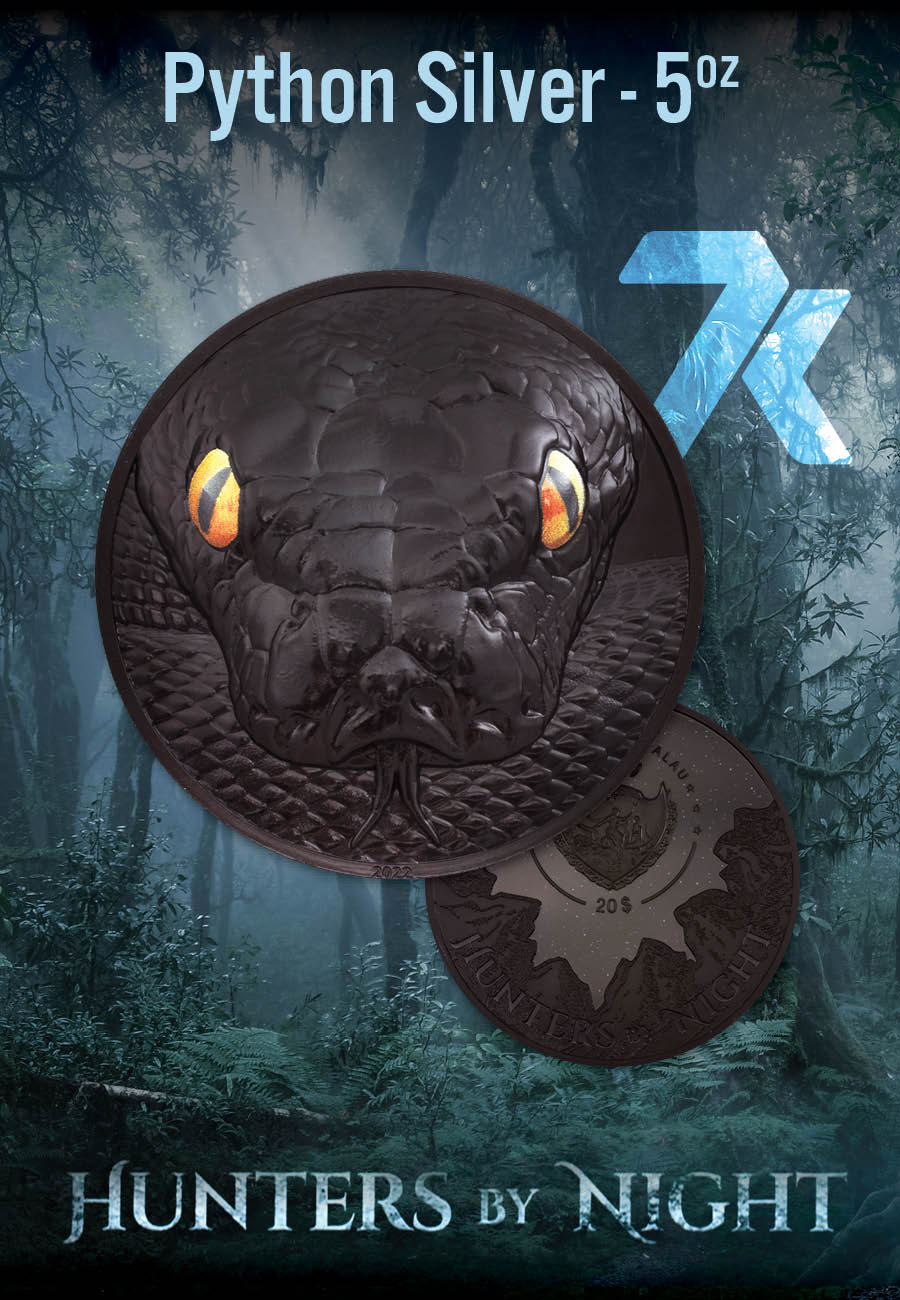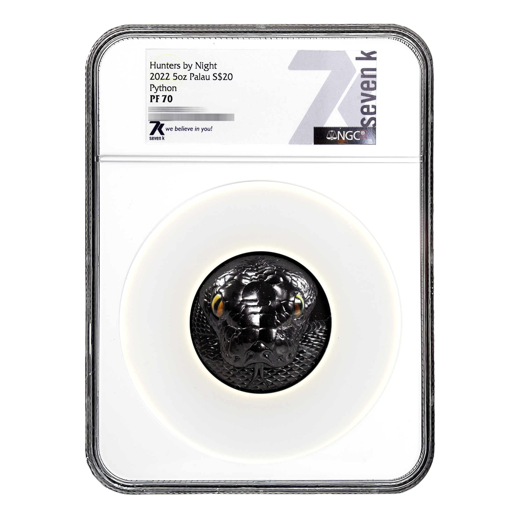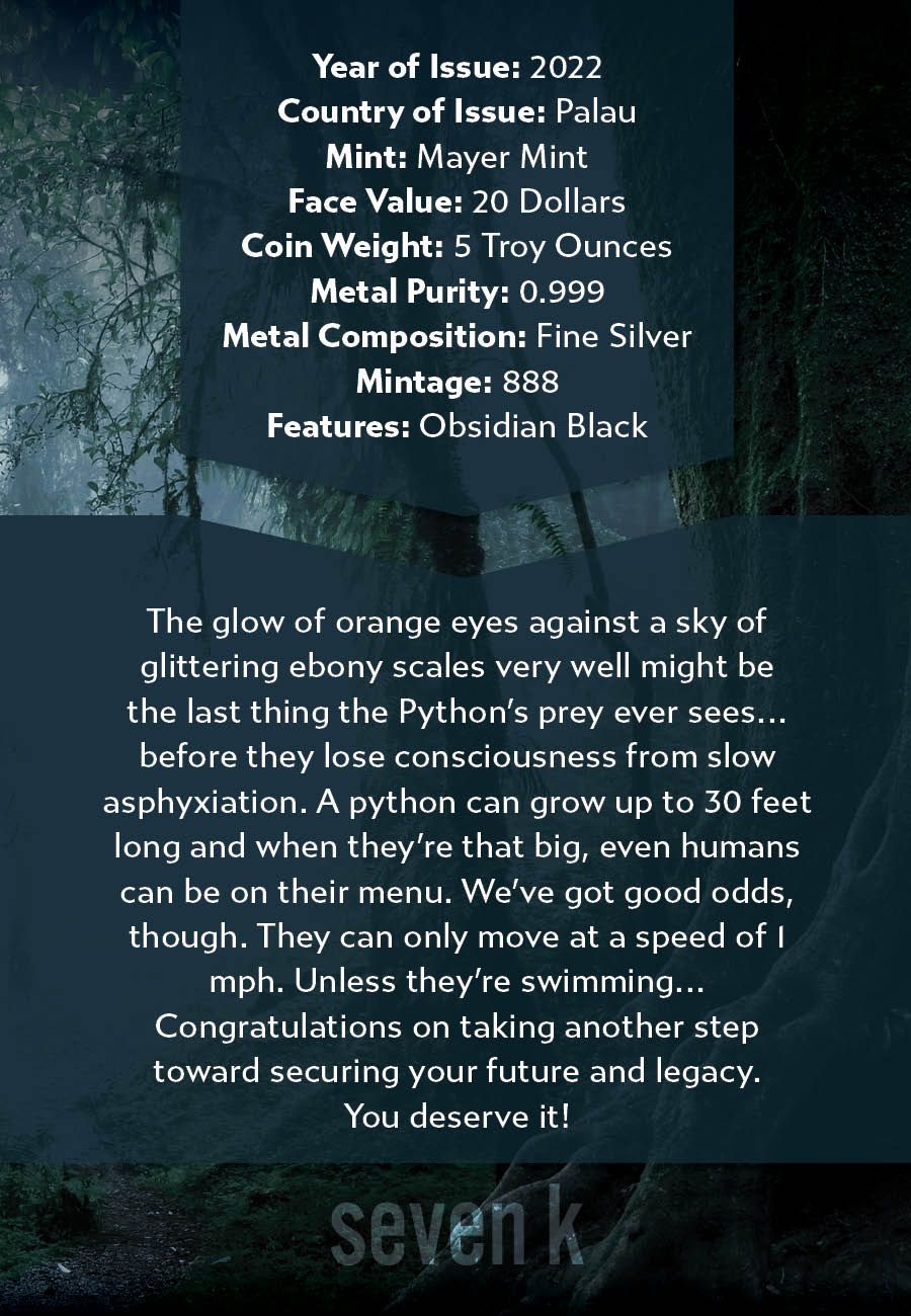 2022 Hunters By Night Python 5 oz Obsidian Black Silver Coin PF70 & PF69