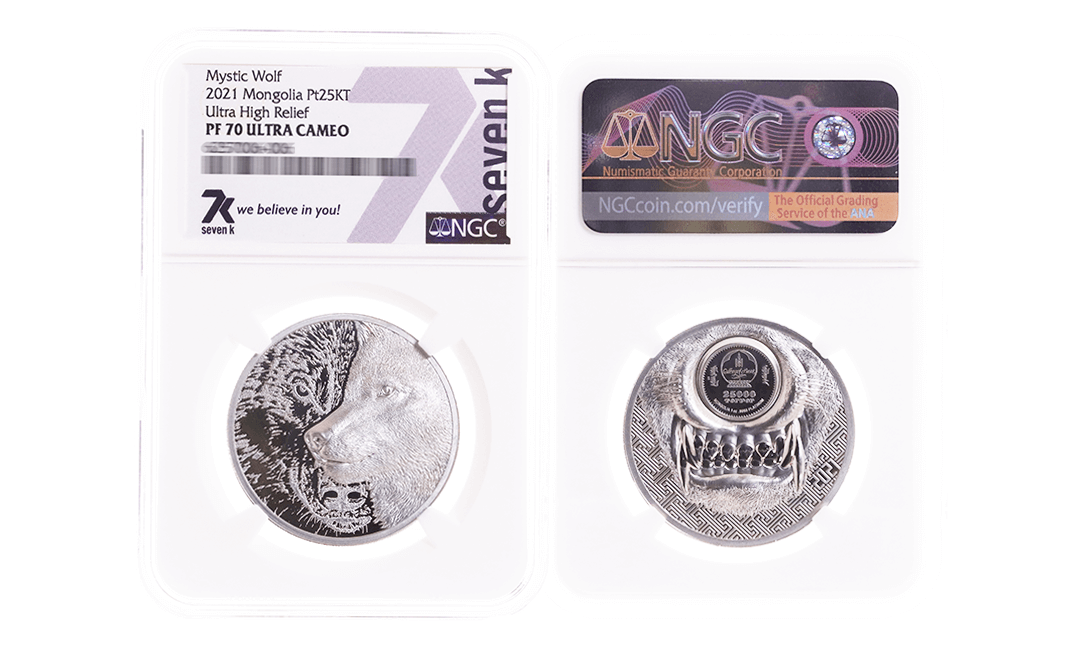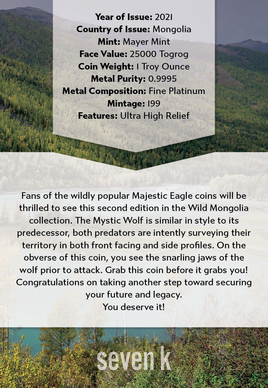 Coin #4: 2021 Wild Mongolia Mystic Wolf 1oz Platinum Coin PF70