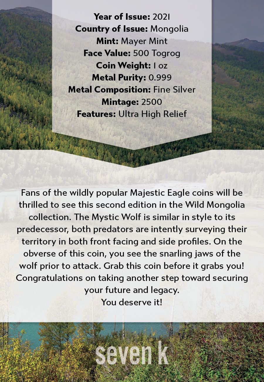 Coin #3: 2021 Wild Mongolia Mystic Wolf 1oz Silver Coin PF70