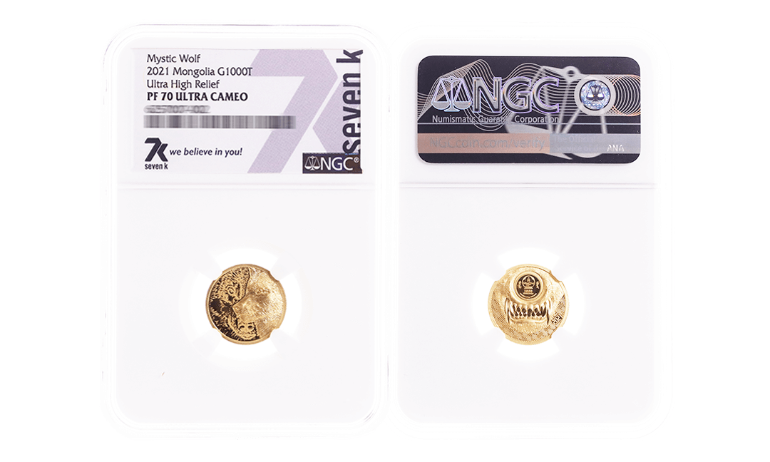 Coin #6: 2021 Wild Mongolia Mystic Wolf 1oz Gold Coin PF70