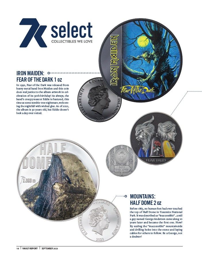 In 1992, Fear of the Dark was released from heavy metal band Iron Maiden and this coin does real justice to the album artwork in celebration of its 30th birthday! As always, the band’s creepy mascot Eddie is featured, this time as some zombie-tree nightmare, welcoming the nightfall with wicked glee. As of 2022, the album is 30 years old, but Eddie doesn’t look a day over rotted.