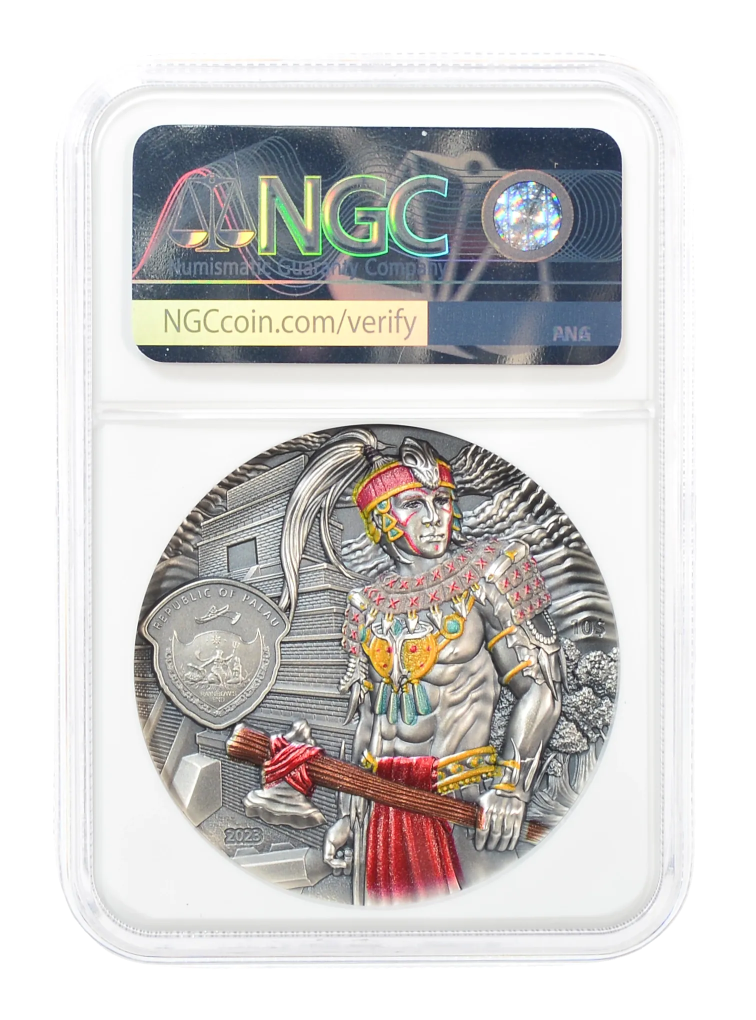 The Lost Civilizations collection again recognizes a people whose contributions to our world are remembered long after their empire’s collapse. From the remnants of their society, we believe ancient Mayans were fearsome warriors with a propensity for bloodshed, as shown by the impressive Mayan fighter on this coin. However, these people were also responsible for amazing feats of architecture, mathematics, farming, art, and calendars!