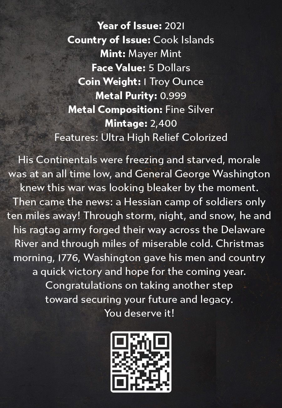 His Continentals were freezing and starved, morale was at an all time low, and General George Washington knew this war was looking bleaker by the moment. Then came the news: a Hessian camp of soldiers only ten miles away! Through storm, night, and snow, he and his ragtag army forged their way across the Delaware River and through miles of miserable cold. Christmas morning, 1776, Washington gave his men and country a quick victory and hope for the coming year.