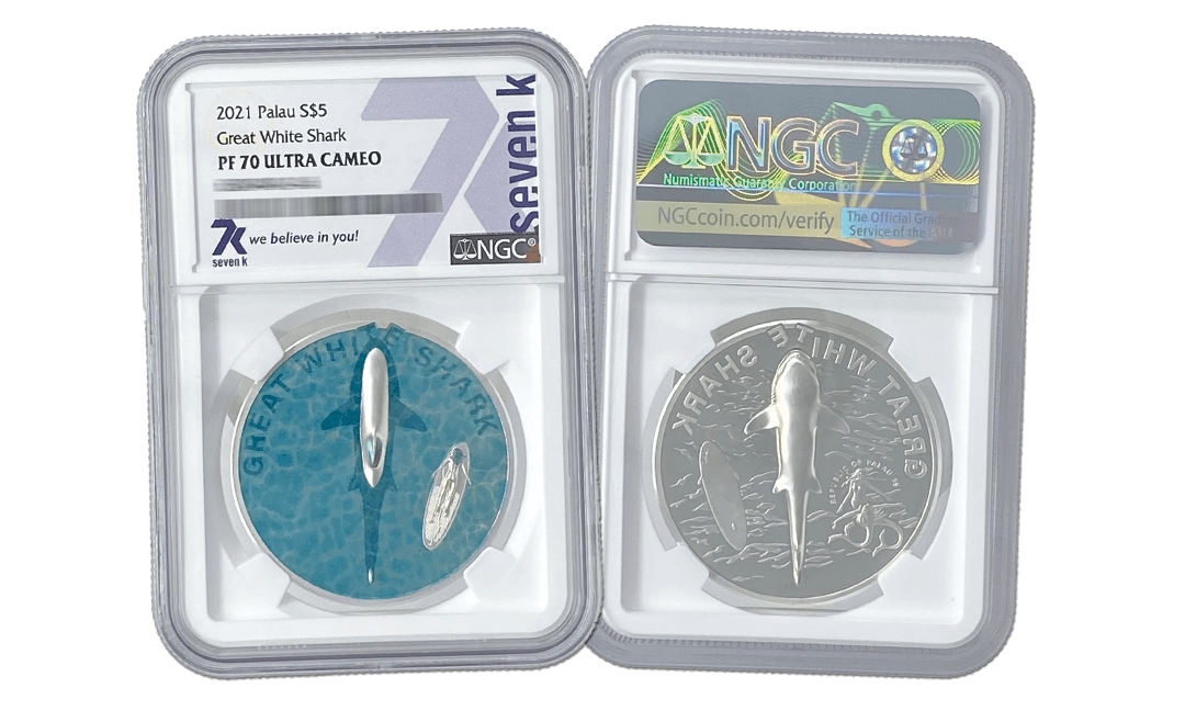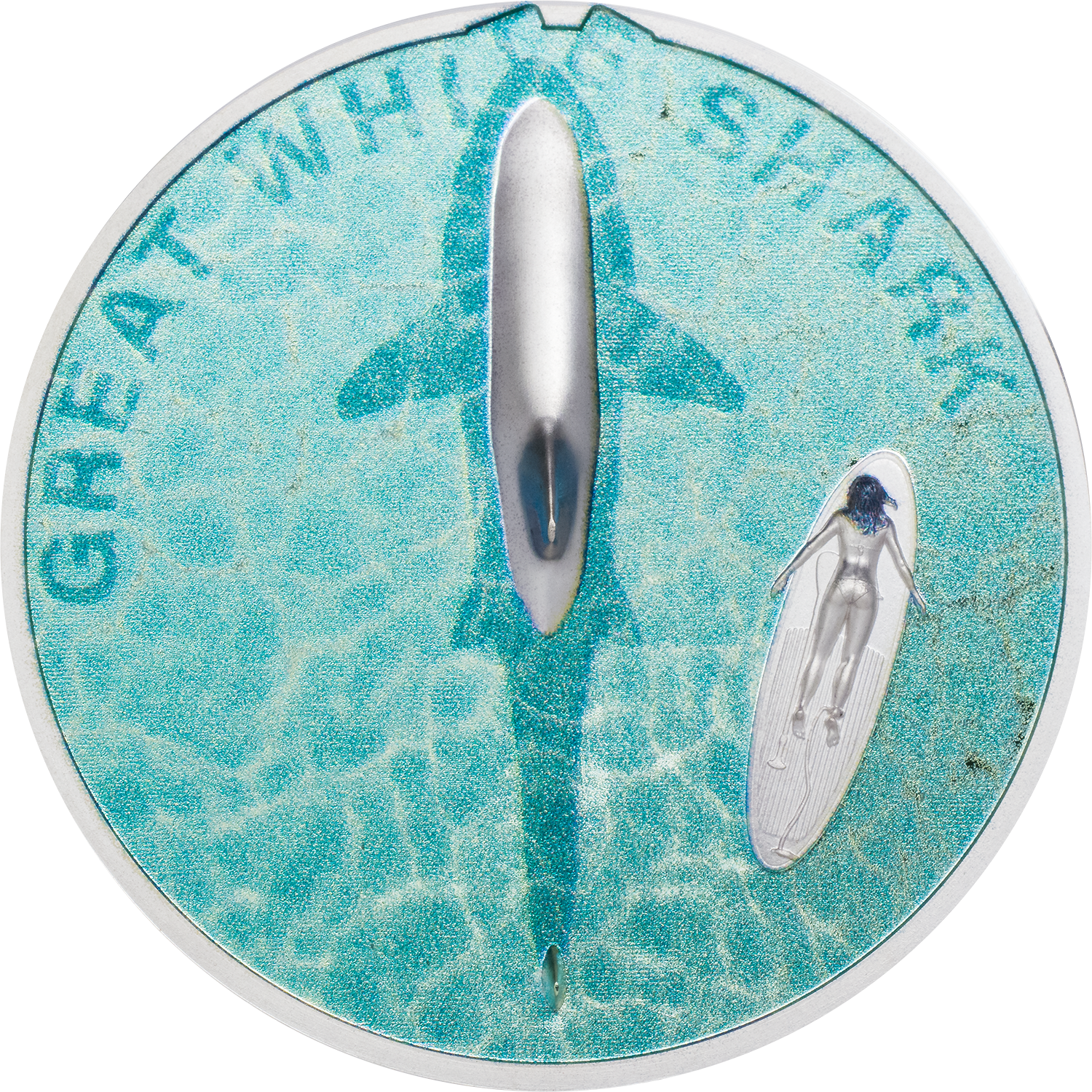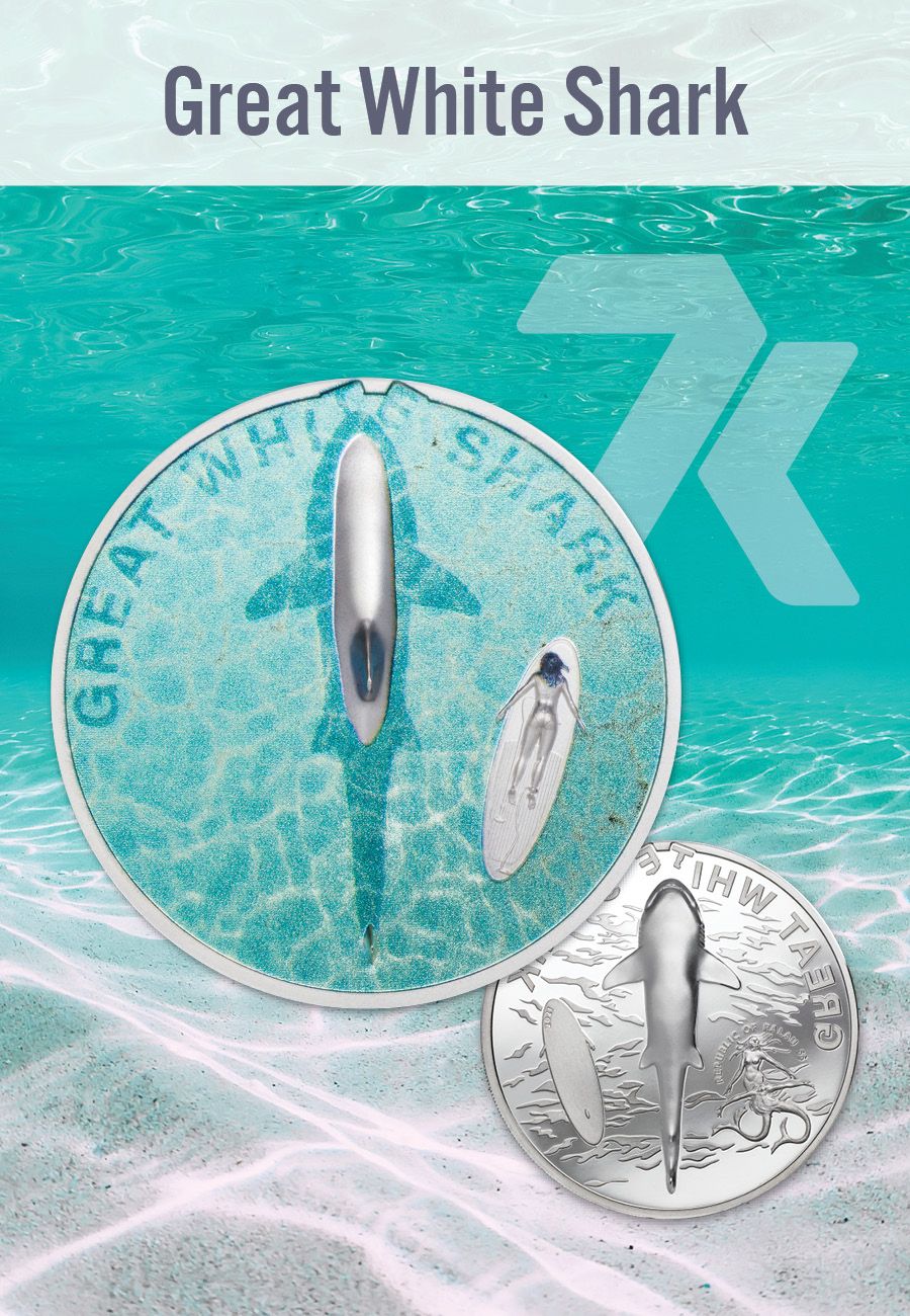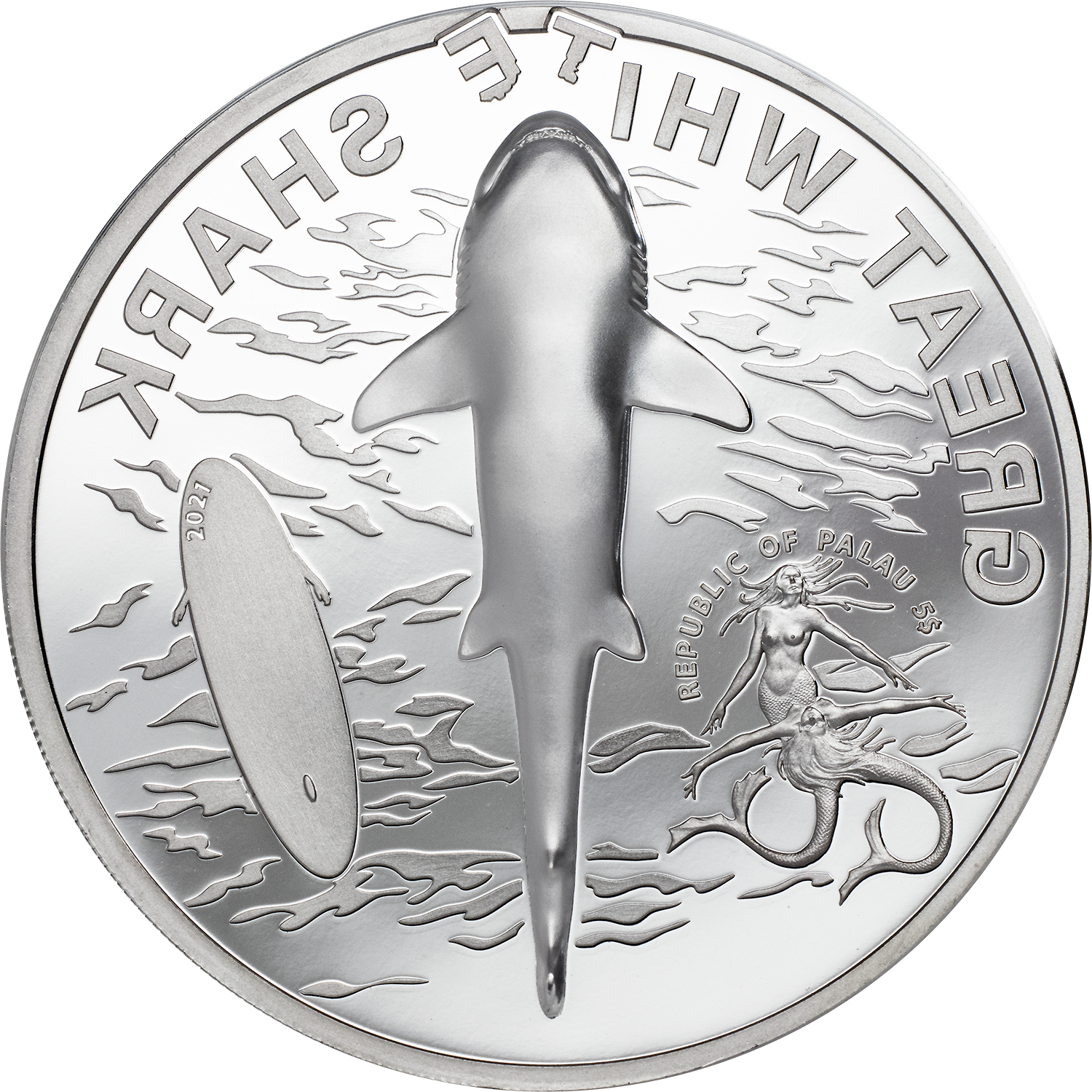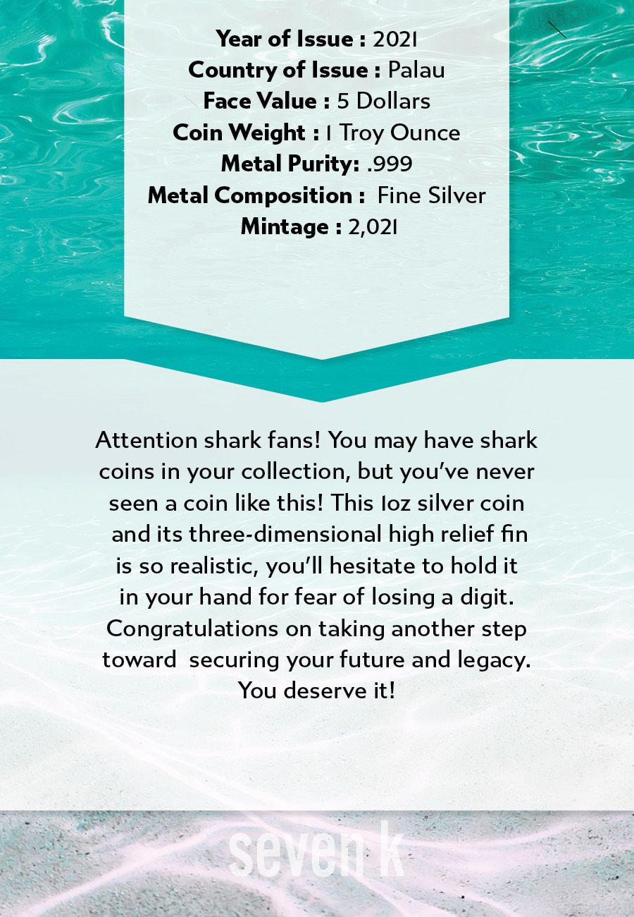 Attention shark fans! You may have shark coins in your collection, but you’ve never seen a coin like this! This 1oz silver coin and its three-dimensional high relief fin is so realistic, you’ll hesitate to hold it in your hand for fear of losing a digit.