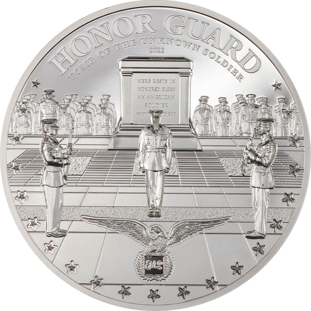 The 2 ounce silver coin shows a member of the Honor Guard in intricate detail and color. While this is a volunteer military position, less than twenty percent of applicants are selected for training, and even fewer make it through the rigorous process. This honor is something that, once awarded, can be taken away if the owner does something to dishonor himself or the tomb. The Honor guard, or ‘Old Guard’ have faithfully been present twenty-four seven to guard the tomb since 1937, which is the mintage of this coin.